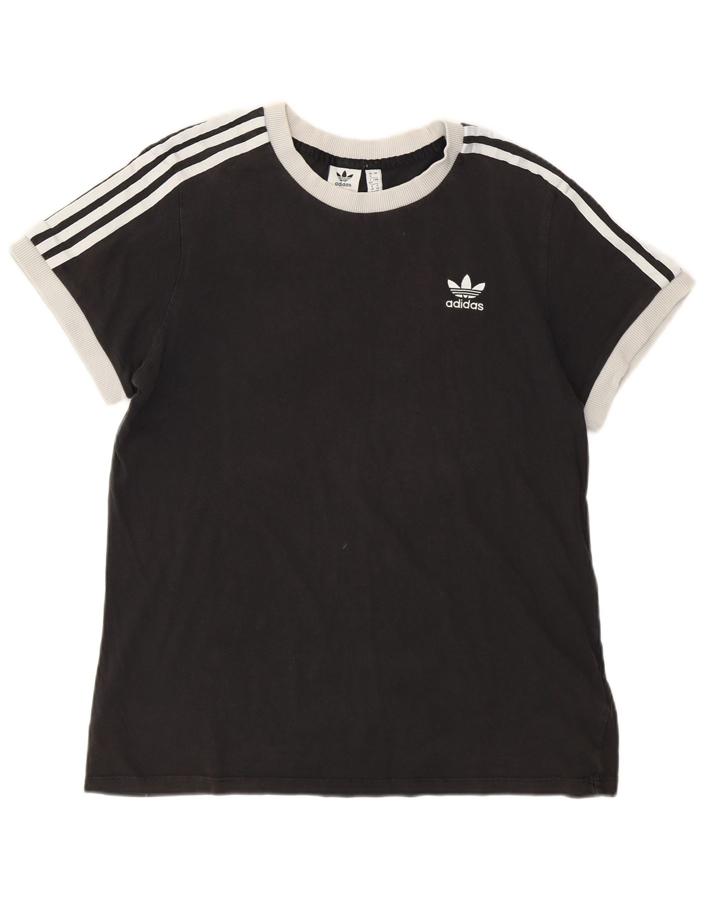 ADIDAS Womens Graphic T-Shirt Top UK 12 Medium Black Cotton