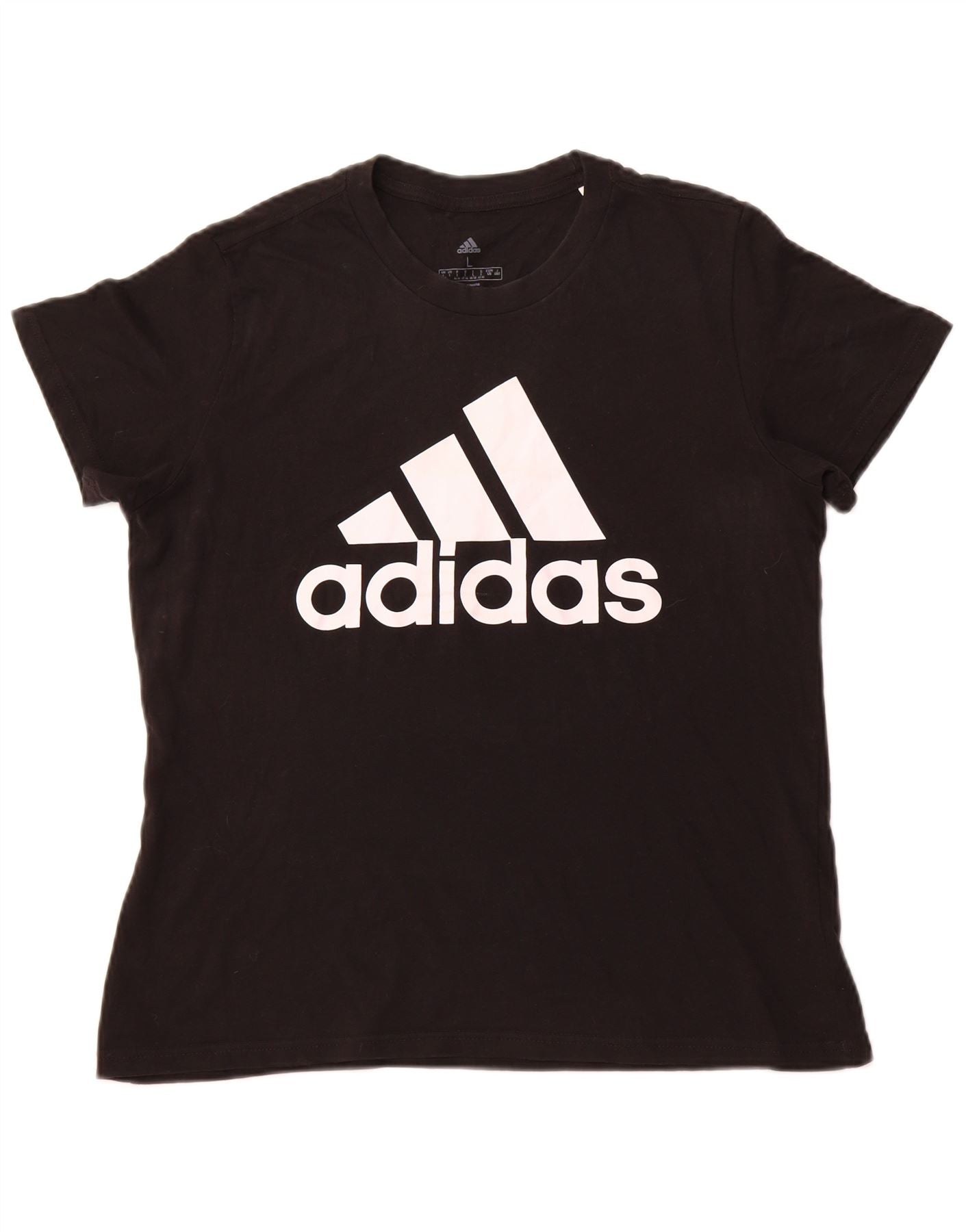 ADIDAS Womens Graphic T-Shirt Top UK 16/18 Large Black Cotton