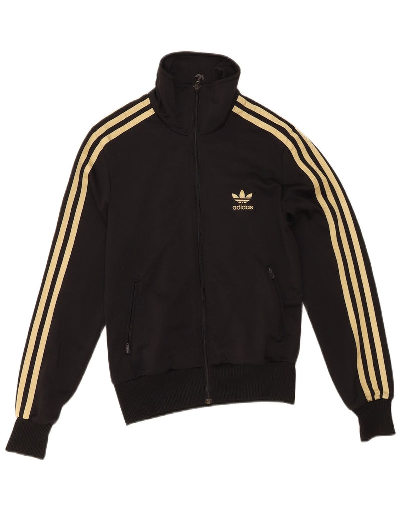 ADIDAS Womens Graphic Tracksuit Top Jacket EU 38 Medium Black Polyester