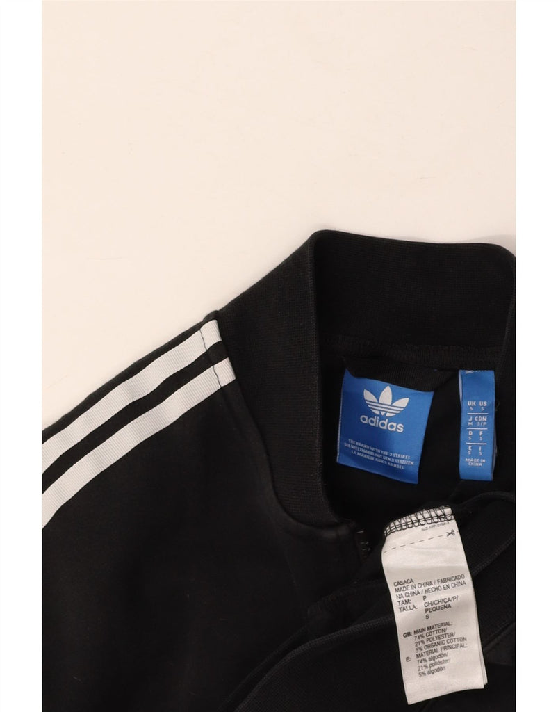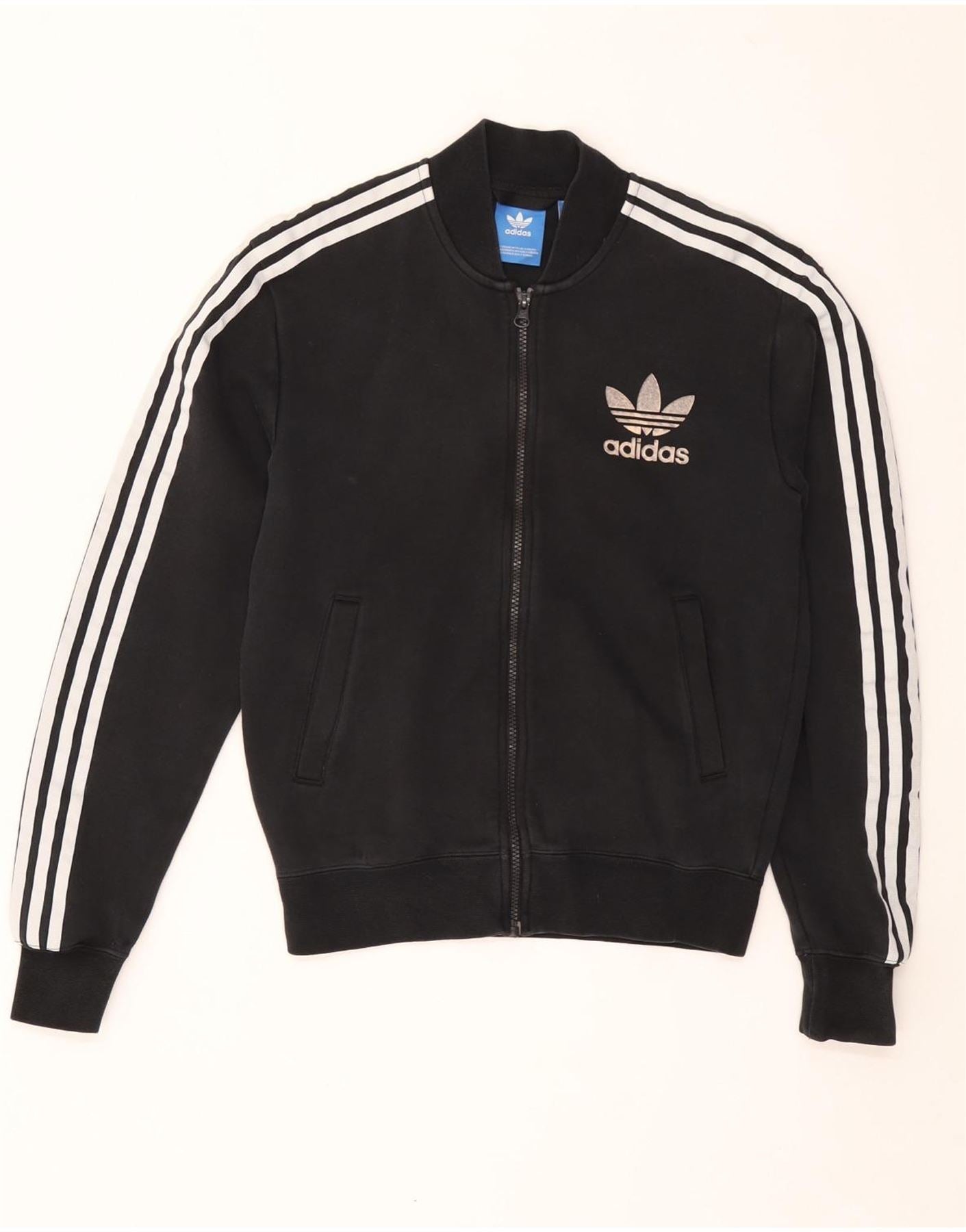 ADIDAS Womens Graphic Tracksuit Top Jacket UK 10 Small Black Cotton