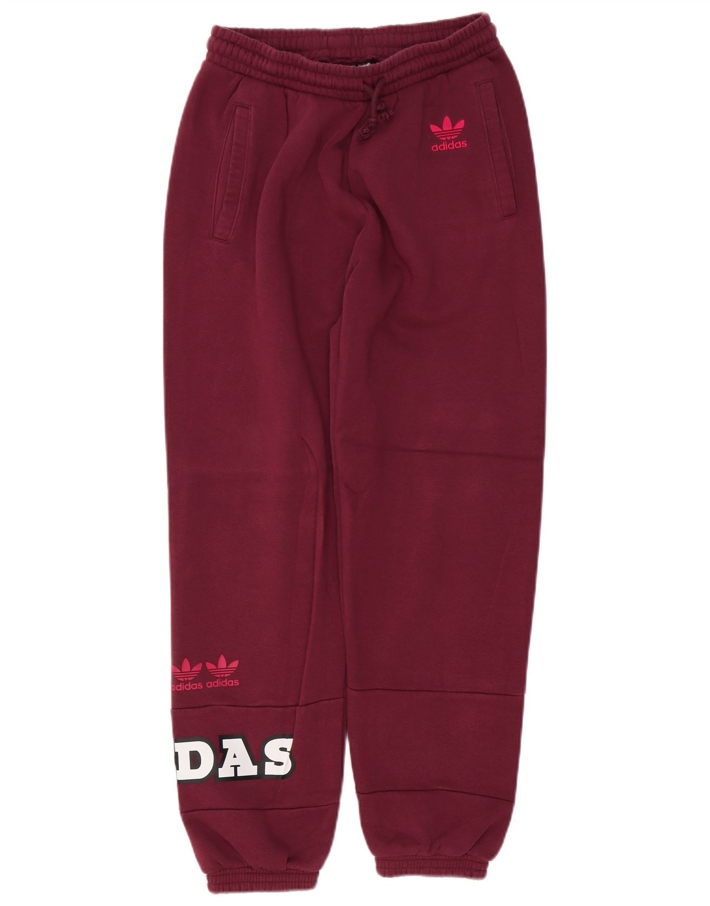 ADIDAS Womens Graphic Tracksuit Trousers Joggers UK 12 Medium Burgundy