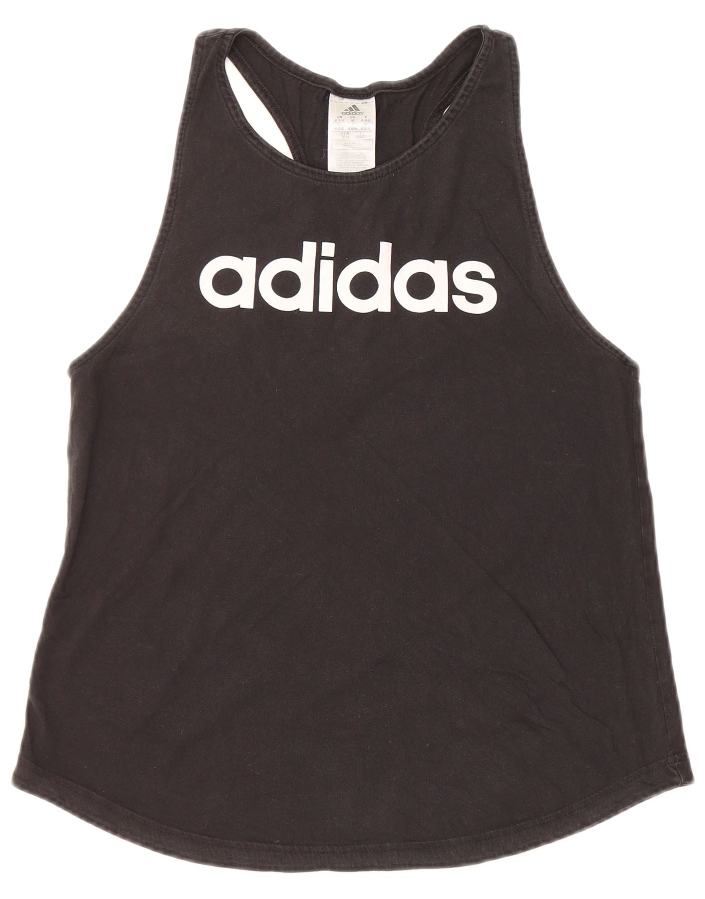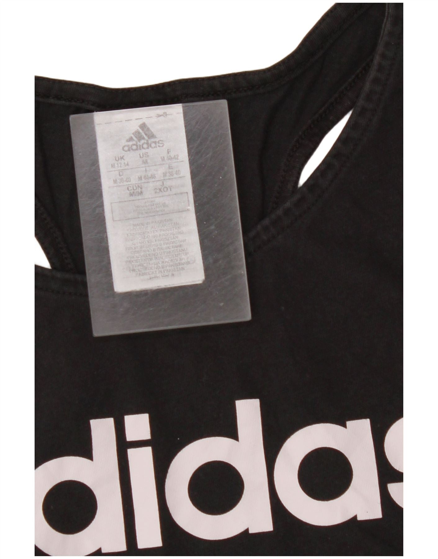 ADIDAS Womens Graphic Vest Top UK 12/14 Medium Black Cotton