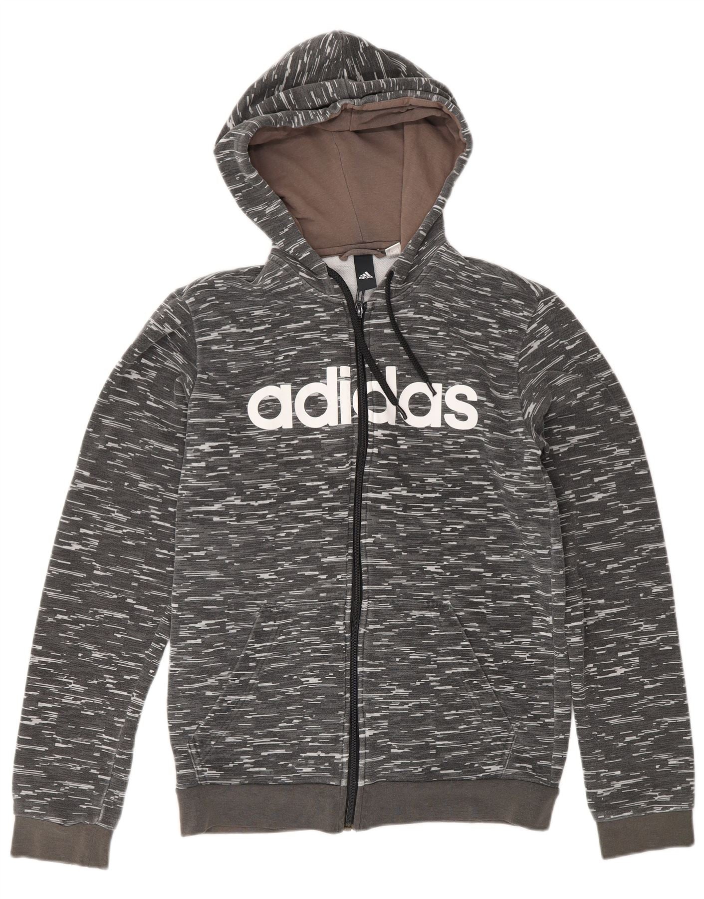 ADIDAS Womens Graphic Zip Hoodie Sweater UK 10 Small Grey Geometric