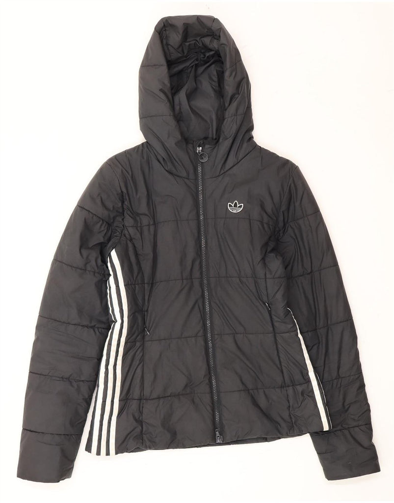 ADIDAS Womens Hooded Padded Jacket UK 10 Small Black Polyester