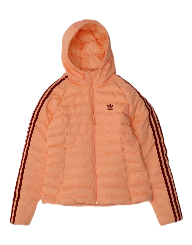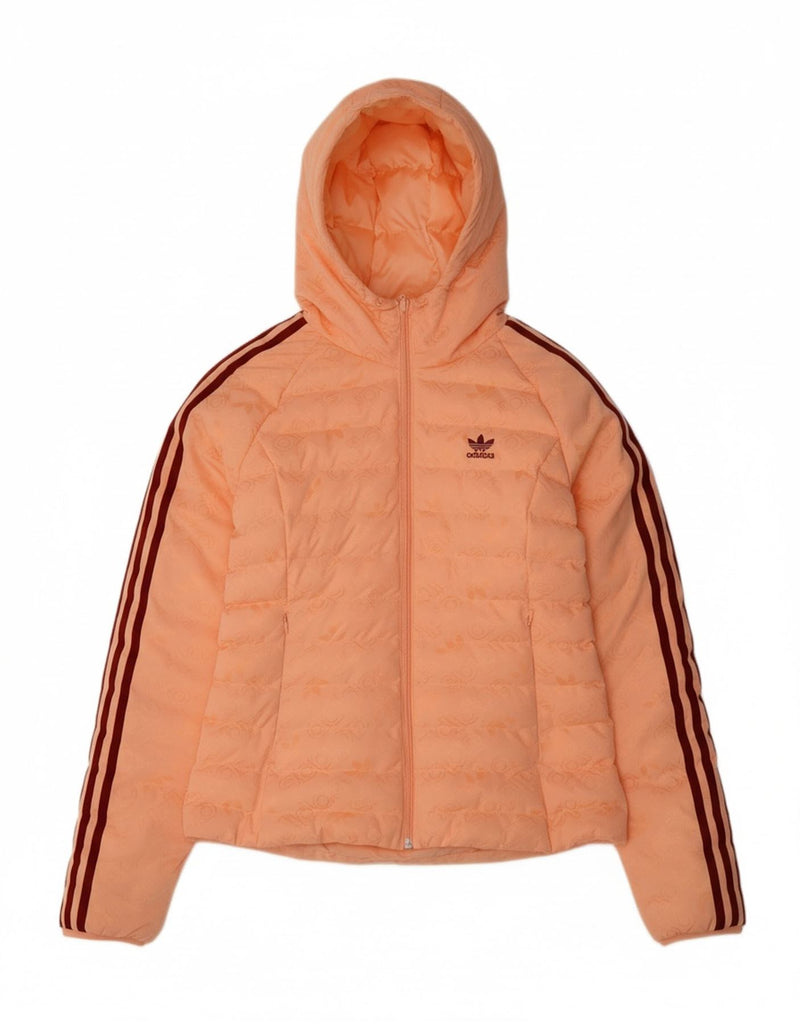ADIDAS Womens Hooded Padded Jacket UK 12 Medium Orange Polyester Sports