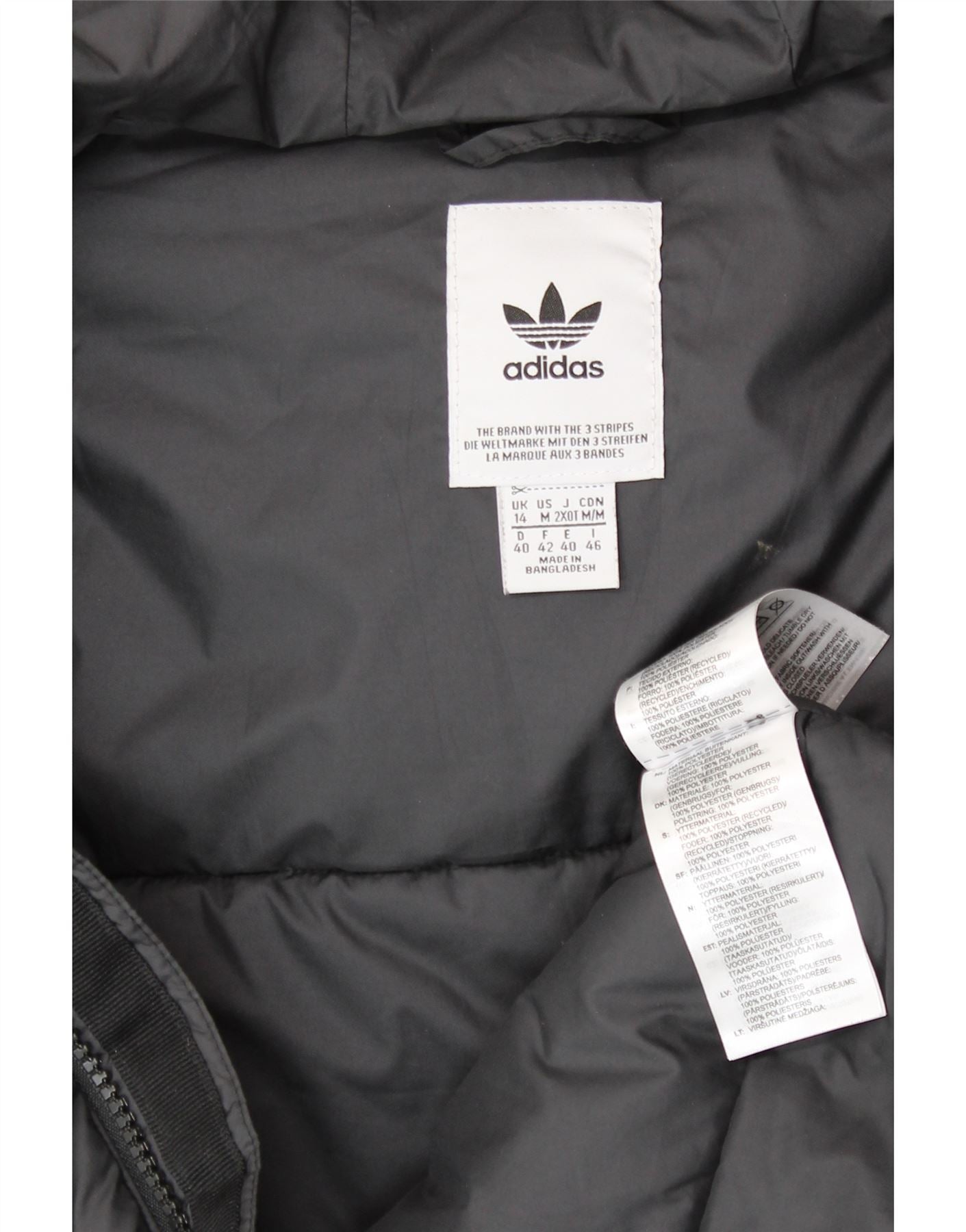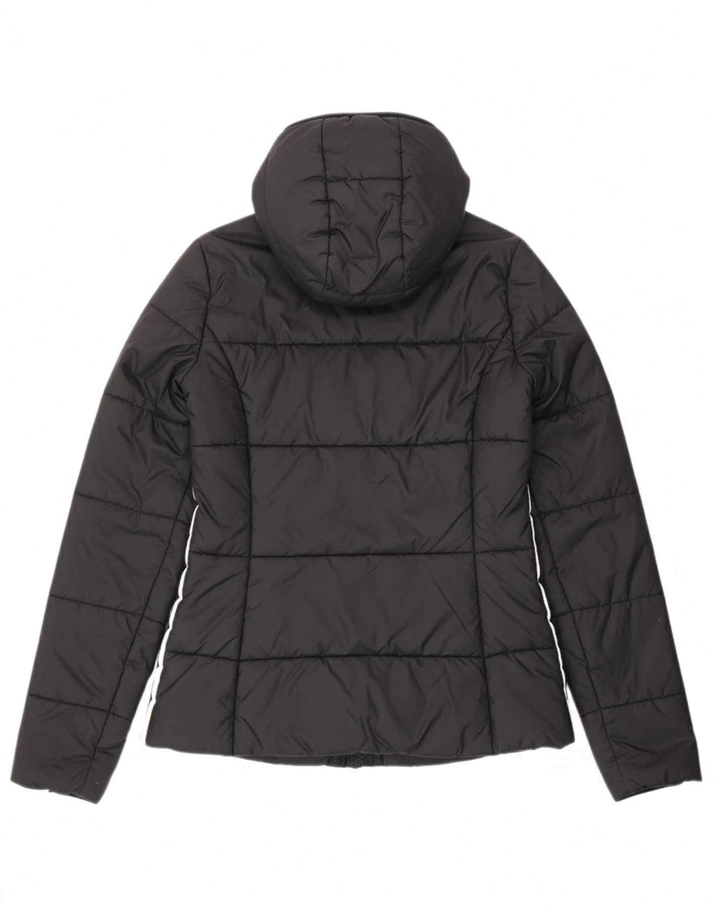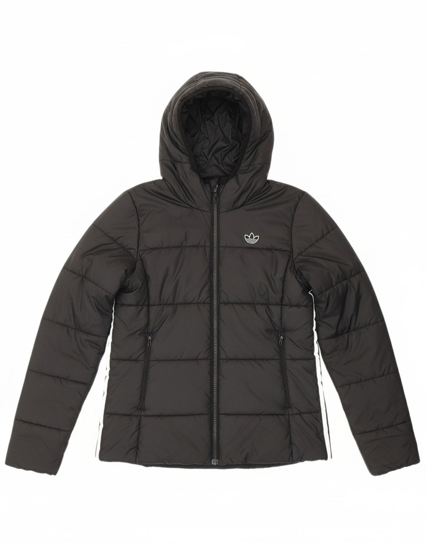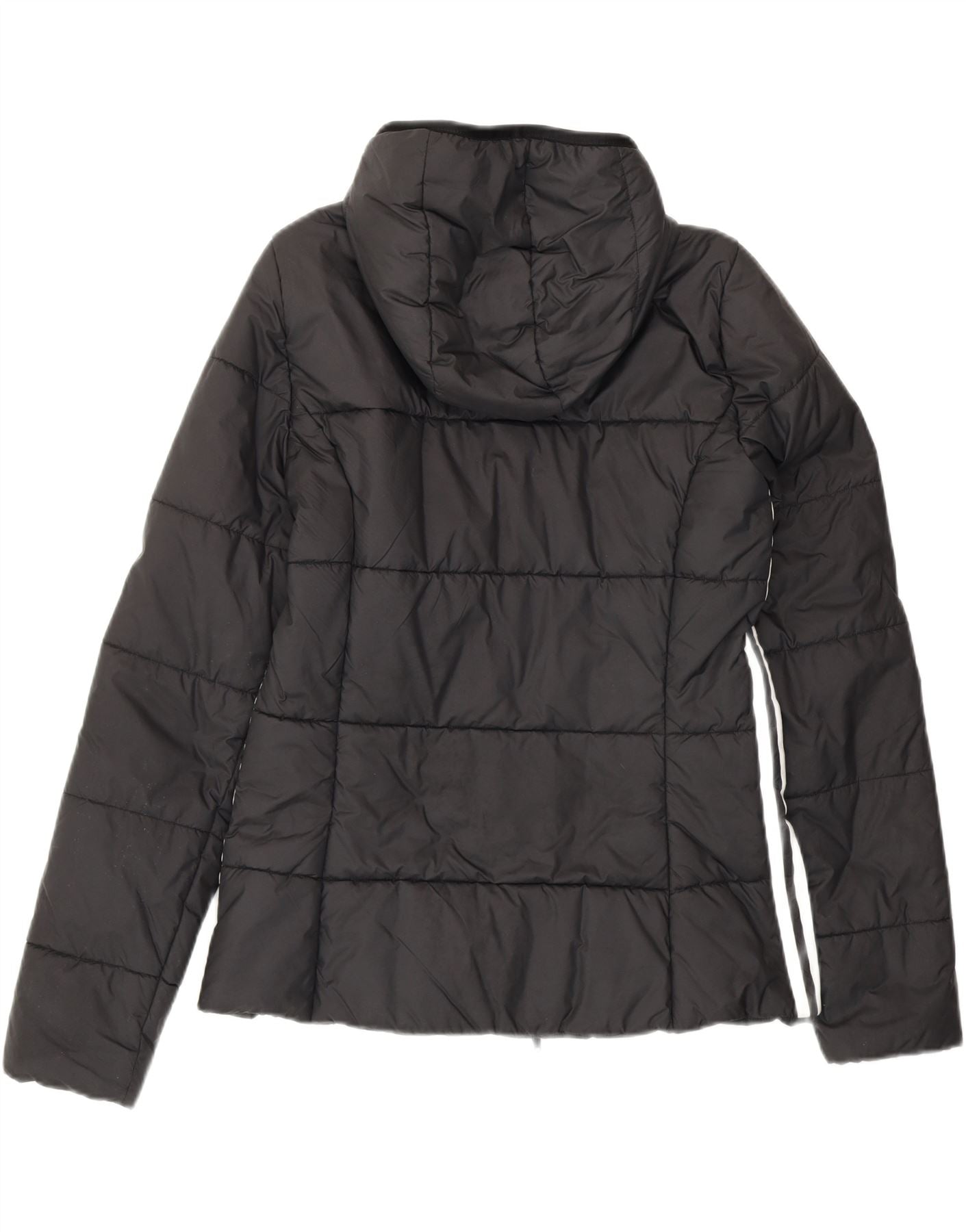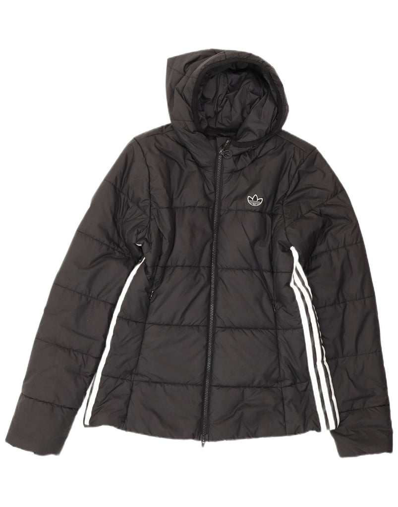 ADIDAS Womens Hooded Padded Jacket UK 14 Medium Black Polyester