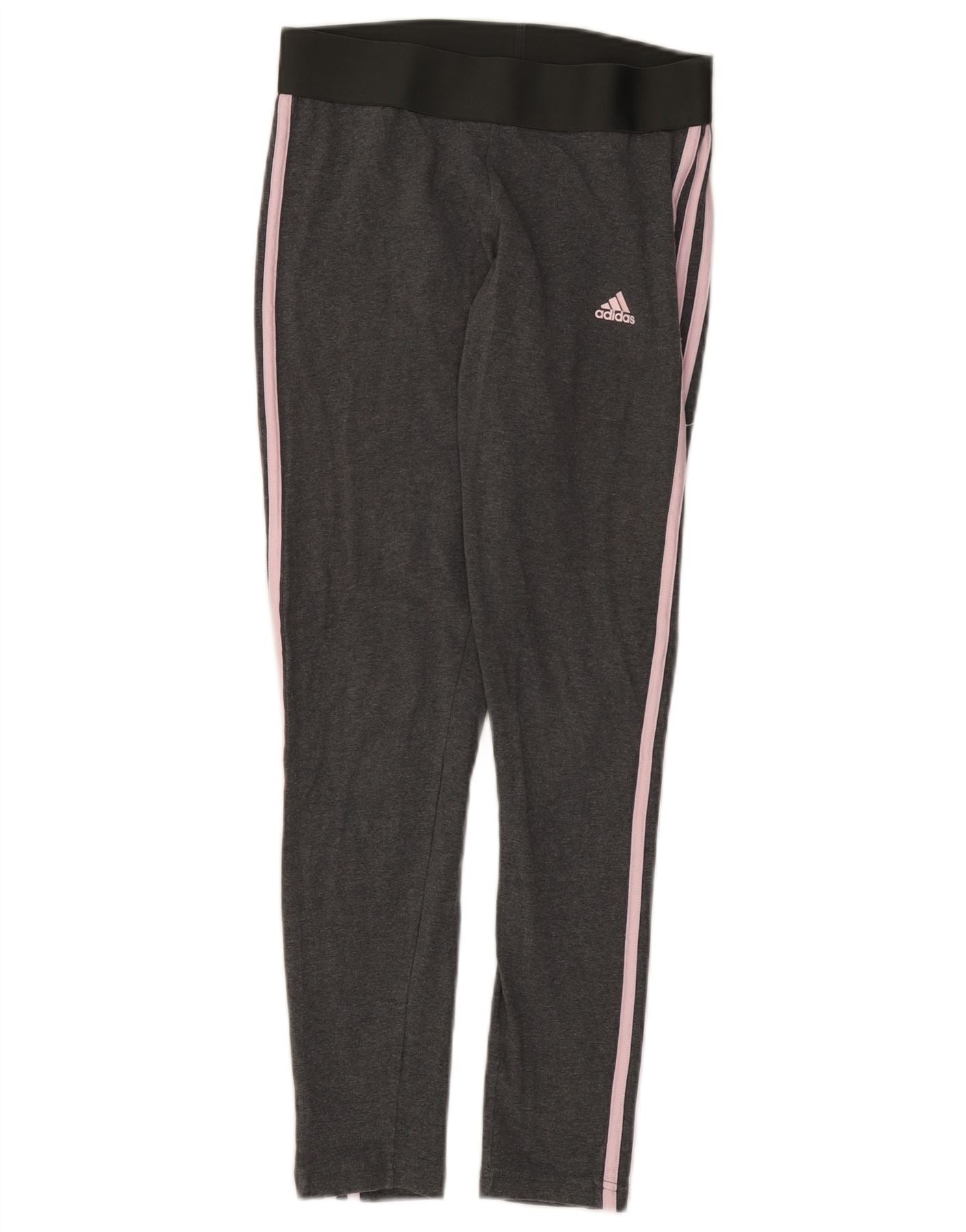 ADIDAS Womens Leggings UK 12/14 Medium Grey Cotton