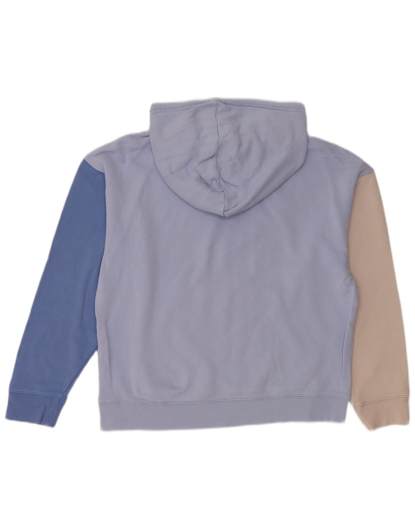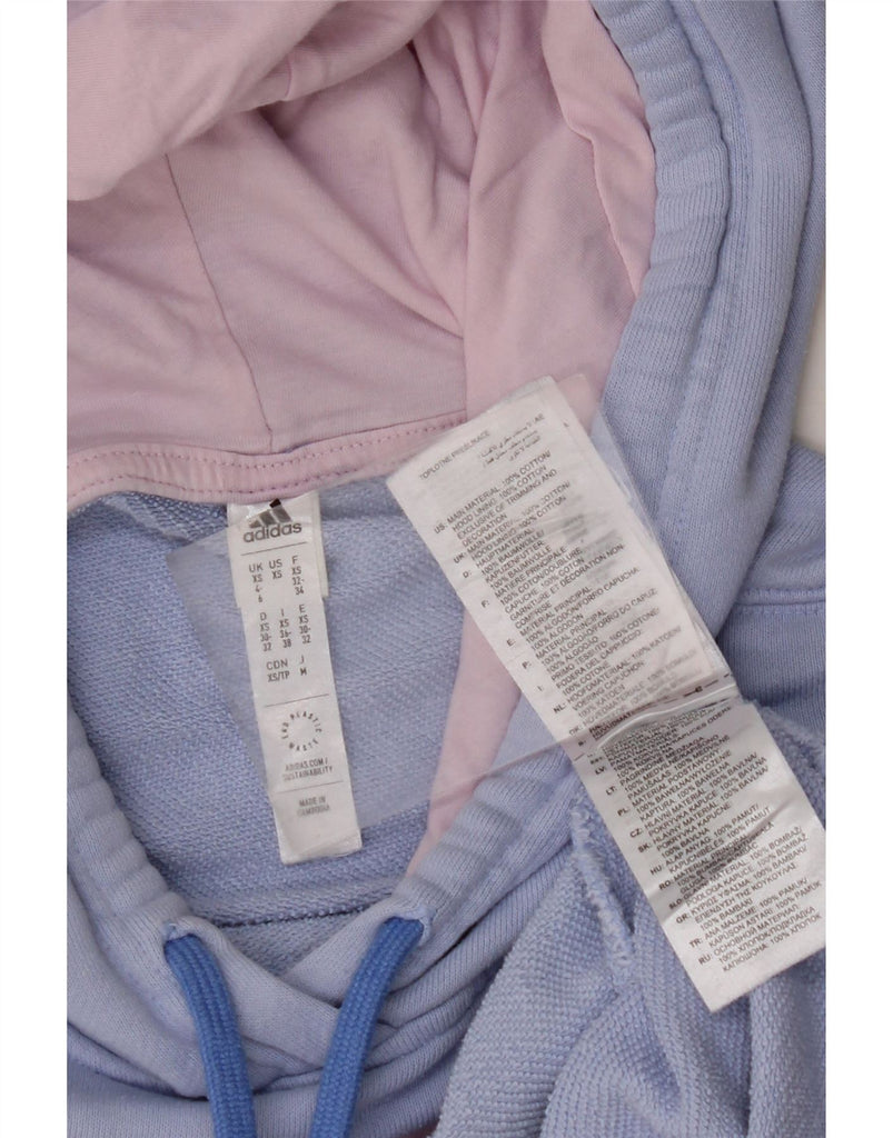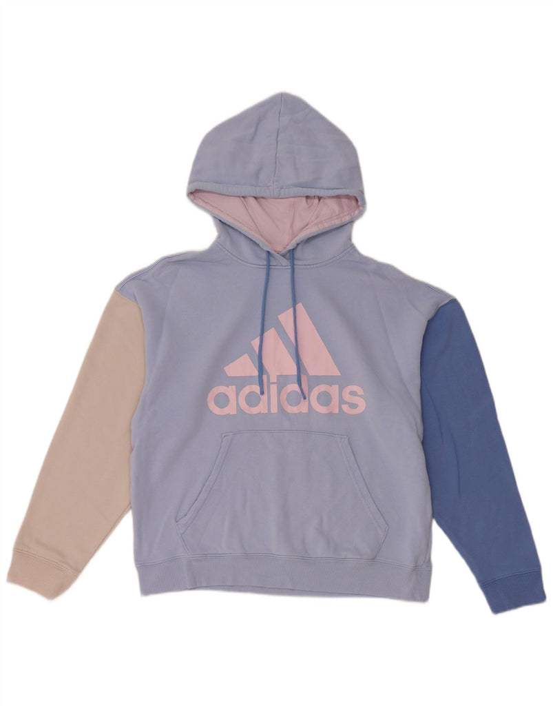 ADIDAS Womens Oversized Graphic Hoodie Jumper UK 4/6 XS Blue Colourblock