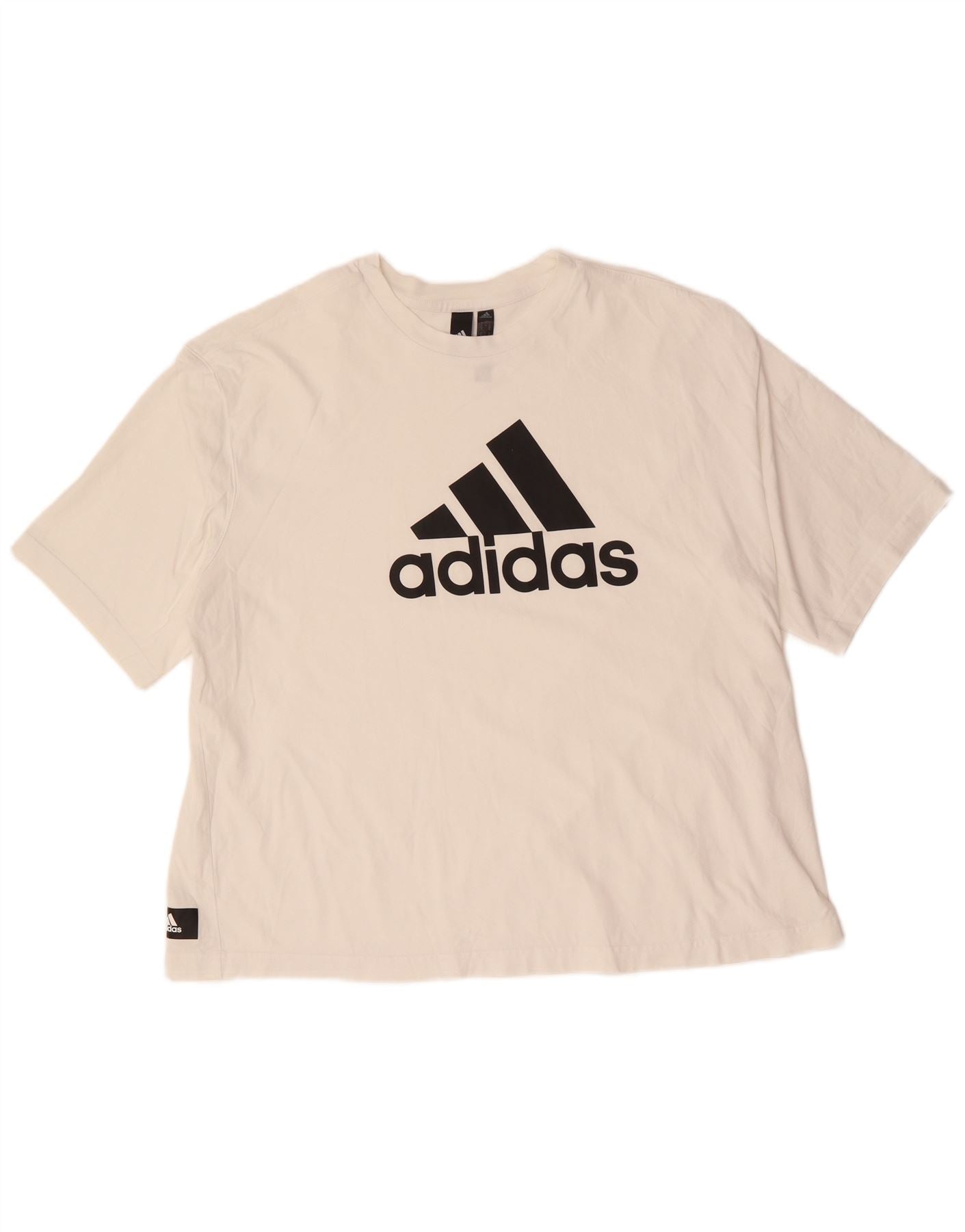 ADIDAS Womens Oversized Graphic T-Shirt Top UK 20/22 XL White Cotton