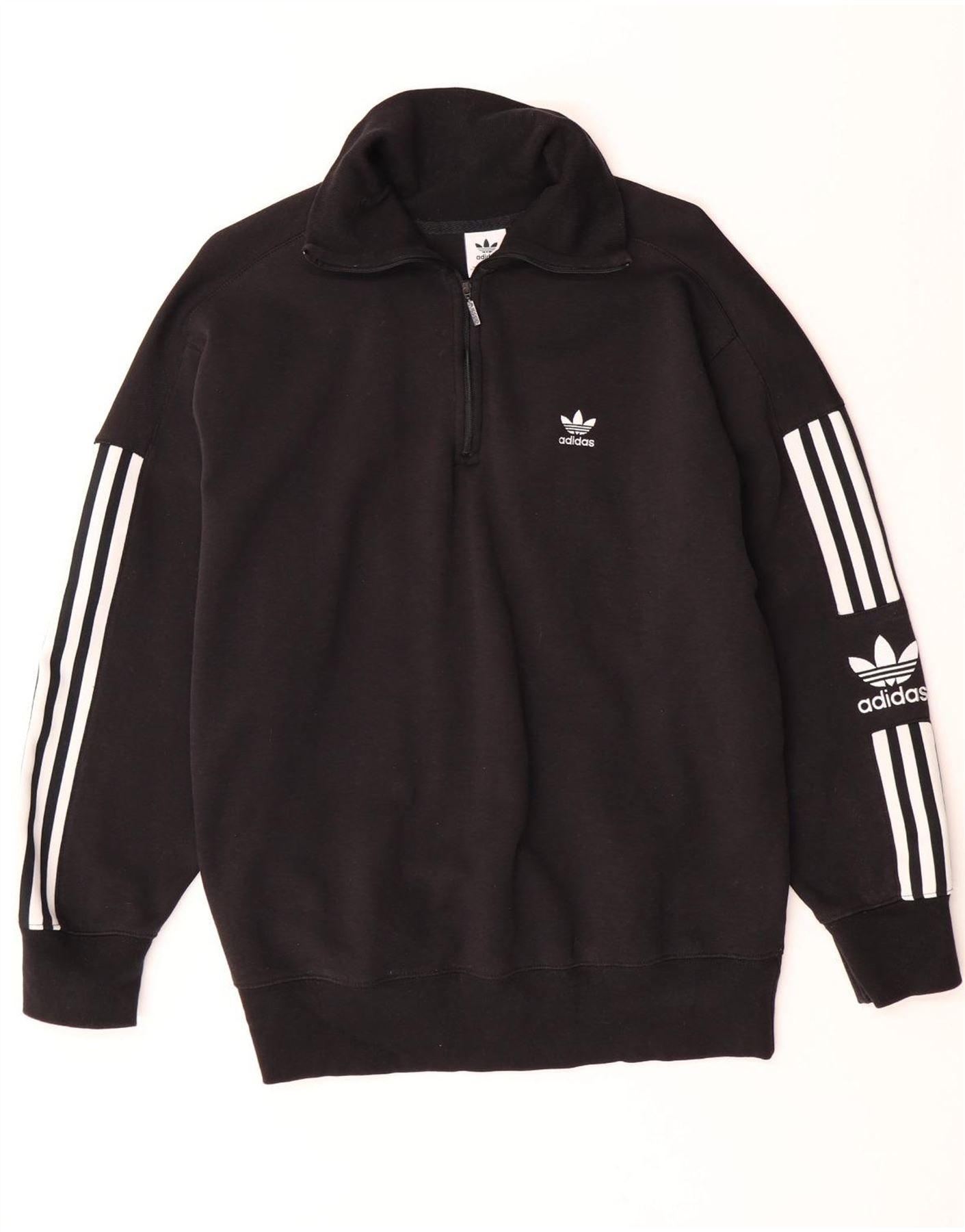 ADIDAS Womens Oversized Zip Neck Sweatshirt Jumper UK 16 Large Black
