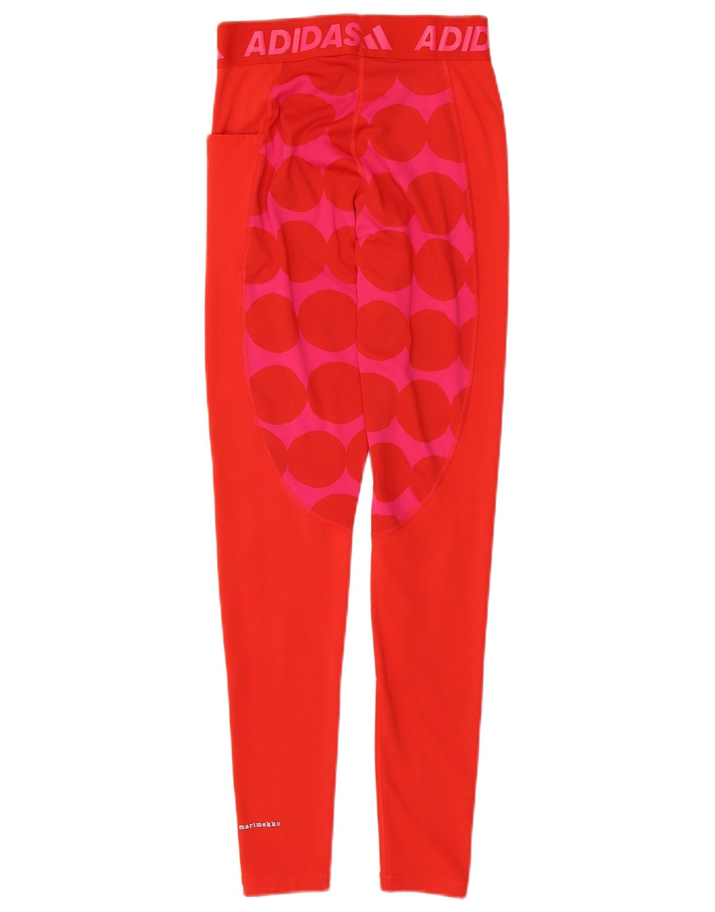 ADIDAS Womens Tech Fit Graphic Leggings UK 8/10 Small Red Polka Dot