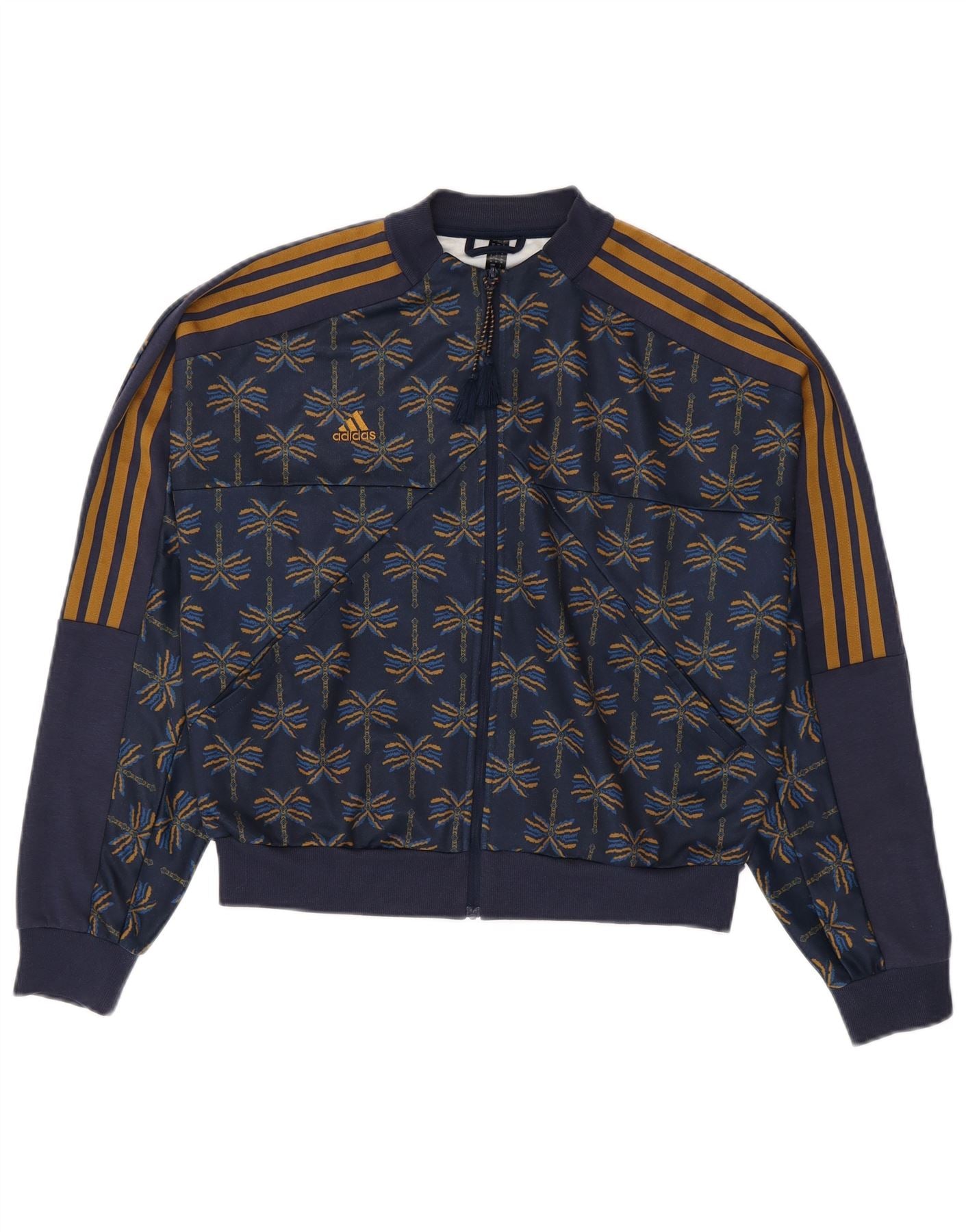 ADIDAS Womens Tracksuit Top Jacket UK 8/10 Small Navy Blue Floral