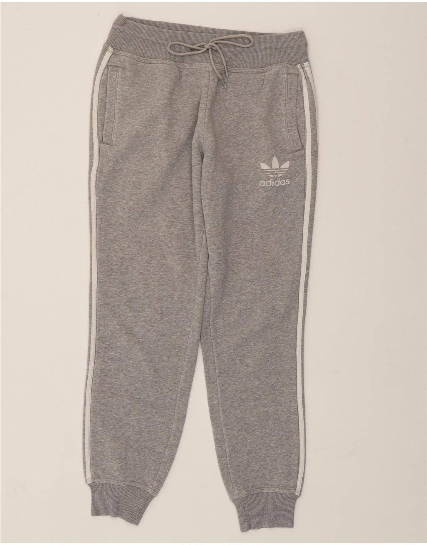 ADIDAS Womens Tracksuit Trousers Joggers UK 10 Small Grey Cotton