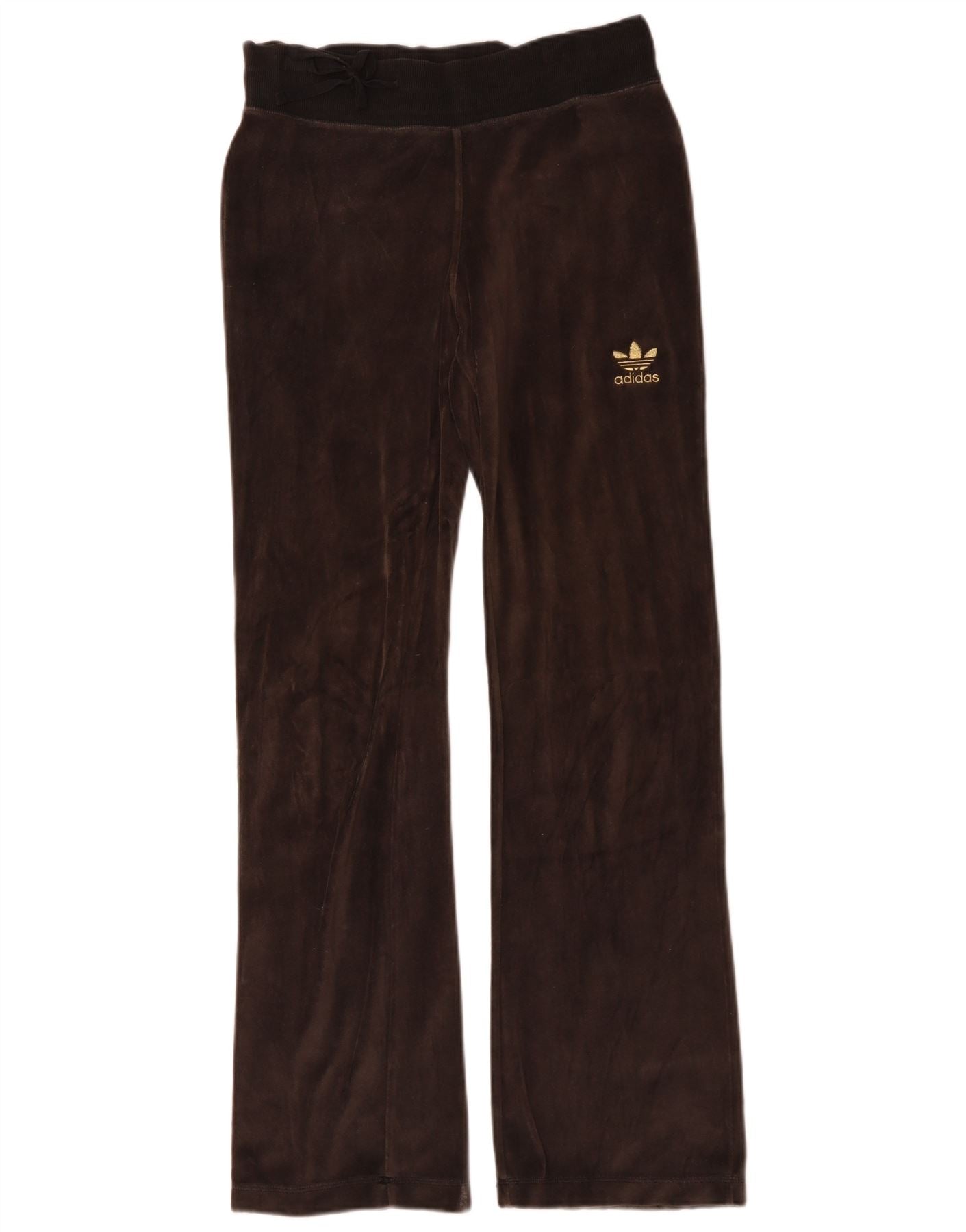 ADIDAS Womens Velvet Tracksuit Trousers EU 42 Medium Brown Cotton