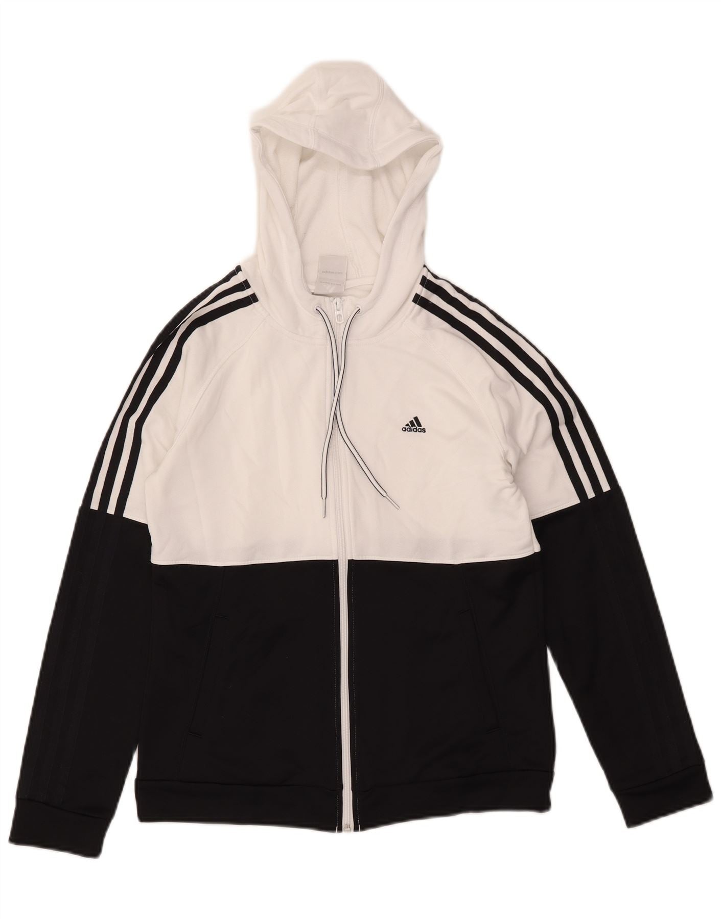 ADIDAS Womens Zip Hoodie Sweater UK 12/14 Medium White Colourblock