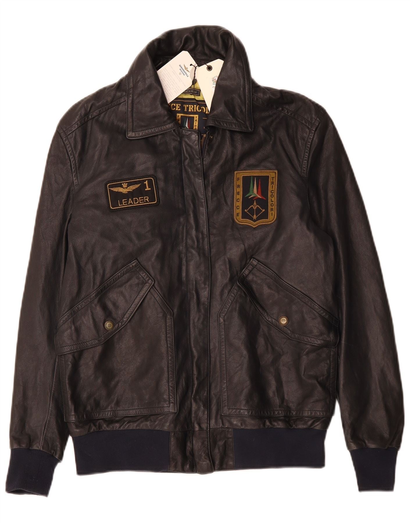 AERONAUTICA MILITARE Womens Graphic Jacket IT 42 Medium Black Leather