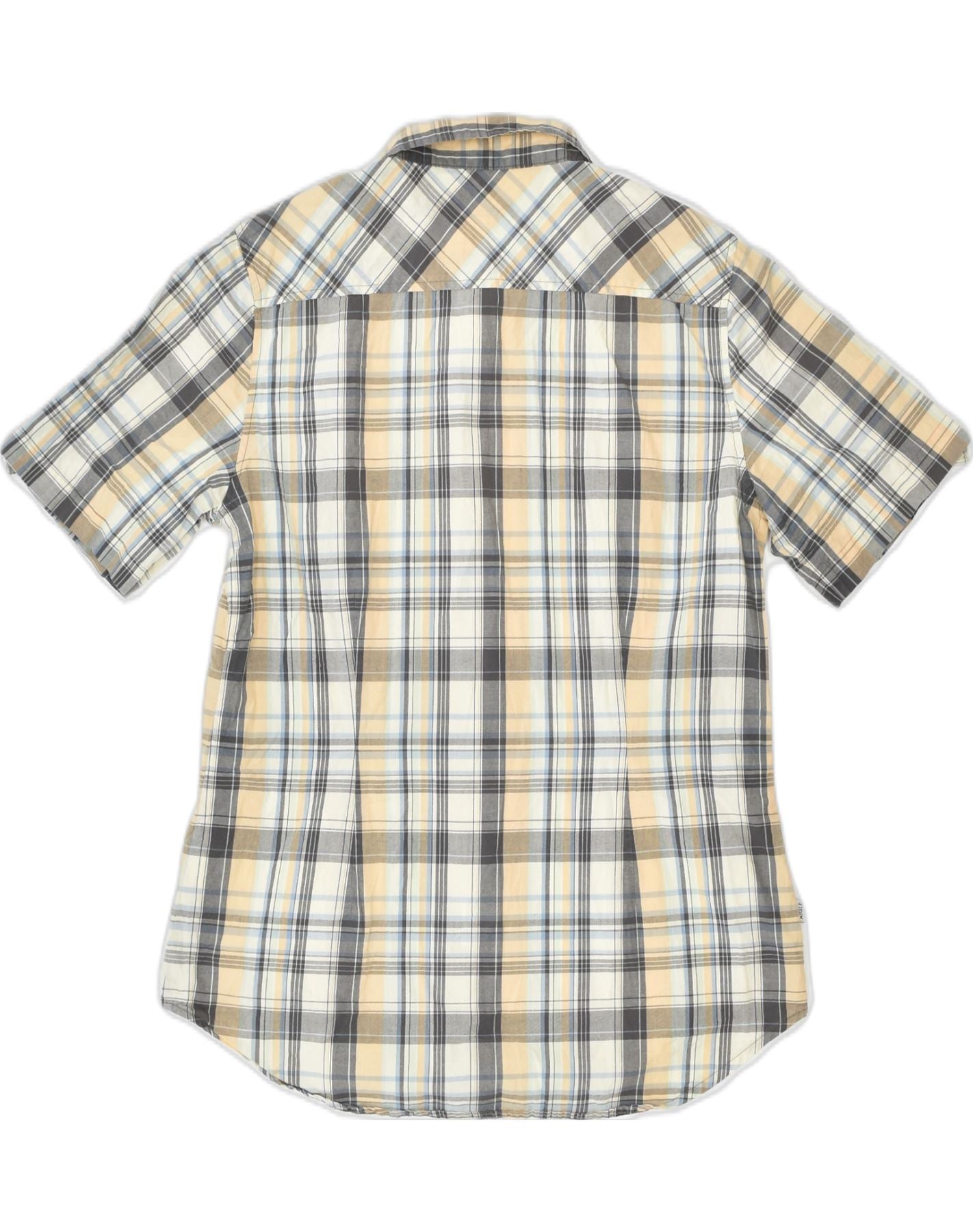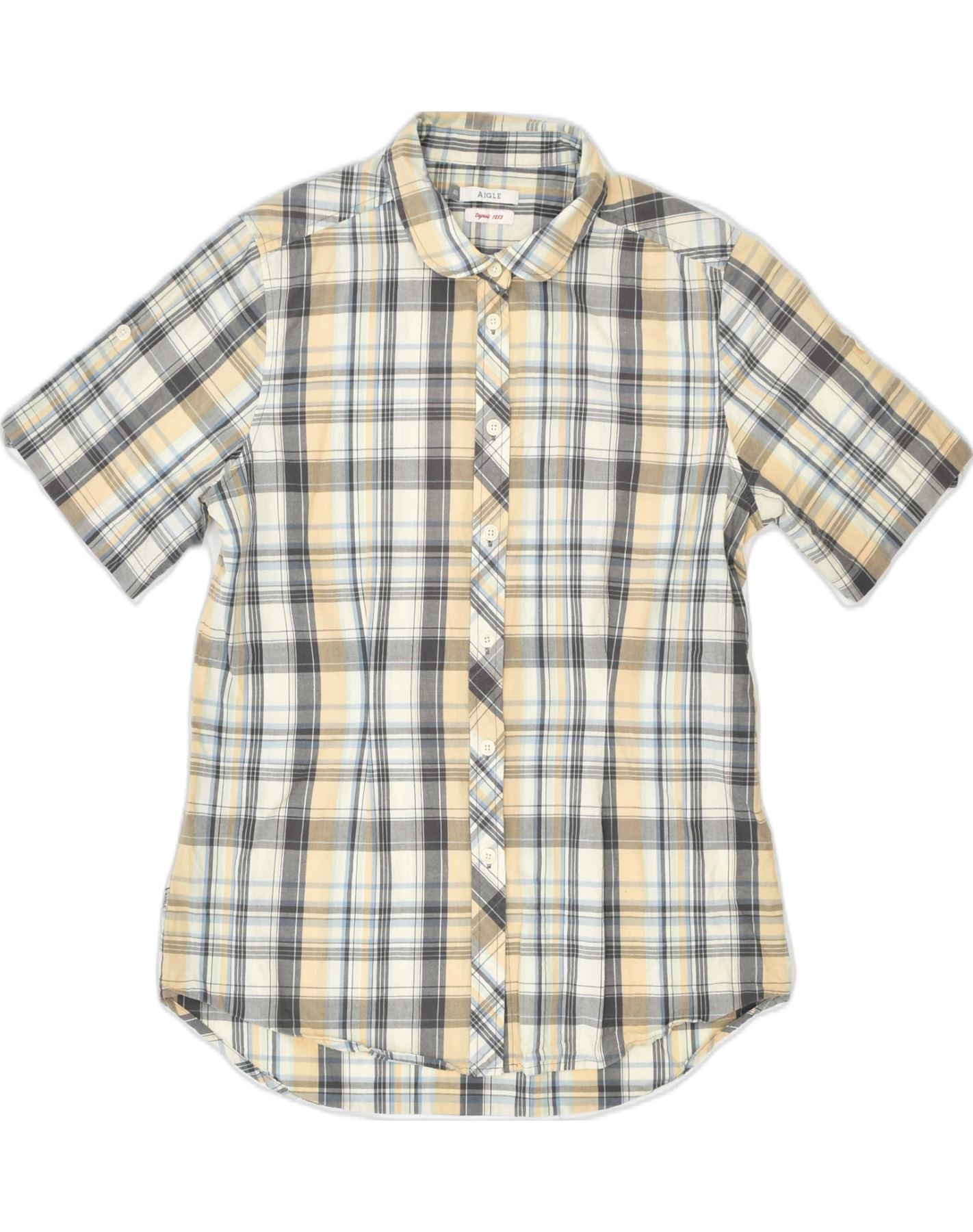 AIGLE Mens Short Sleeve Shirt Size 40 Medium Beige Plaid Cotton