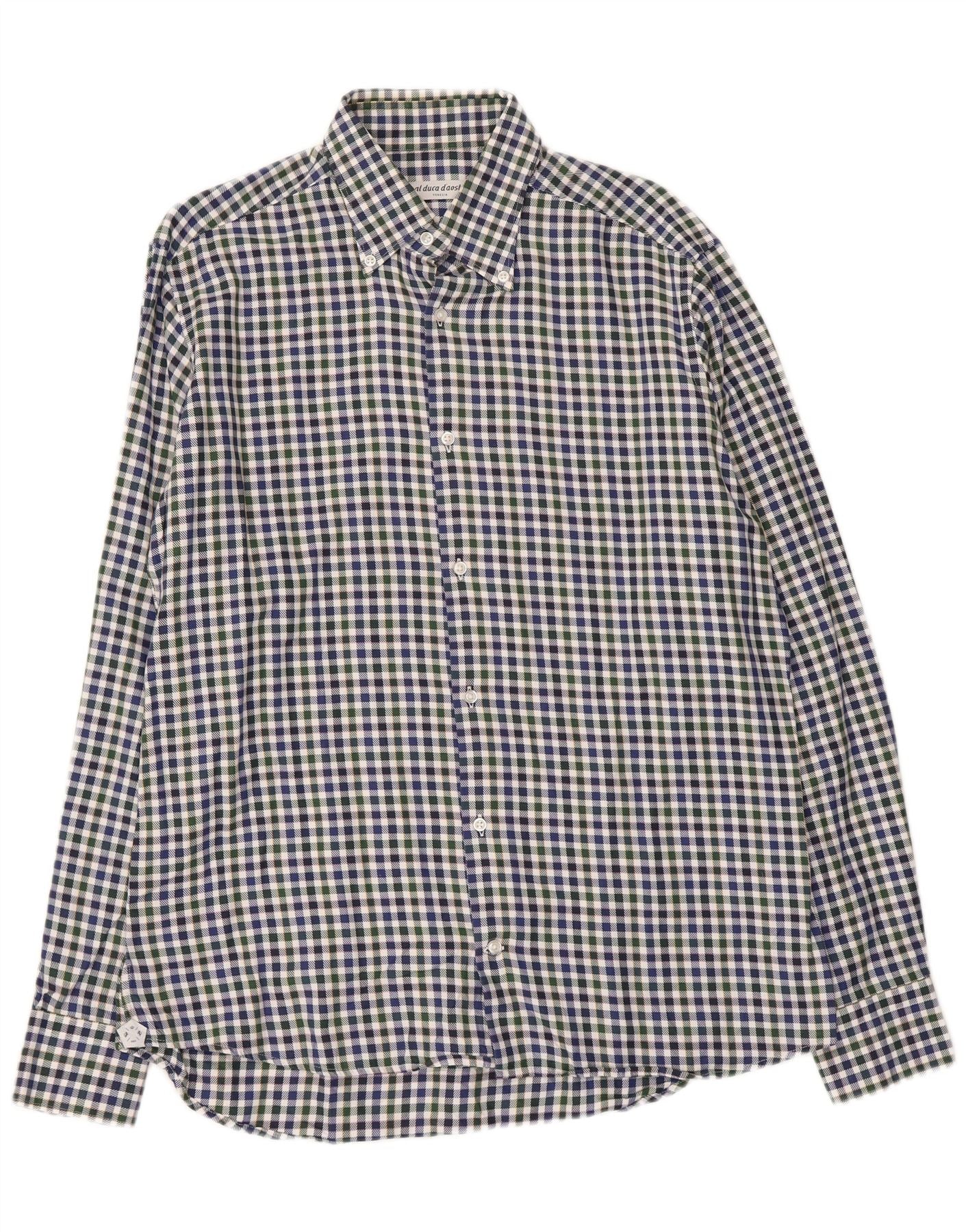 - AI Description: This Al Duca D'Aosta mens shirt is crafted from 100 percent woven cotton, offering a crisp yet comfortable feel. It features a classic gingham check pattern in a sophisticated multicoloured palette of navy blue, green, and white. The collared neckline and full button-up front provide a timeless, smart aesthetic. Long sleeves finish with neat cuffs. Designed with a classic fit, it ensures a comfortable and refined silhouette for versatile wear.