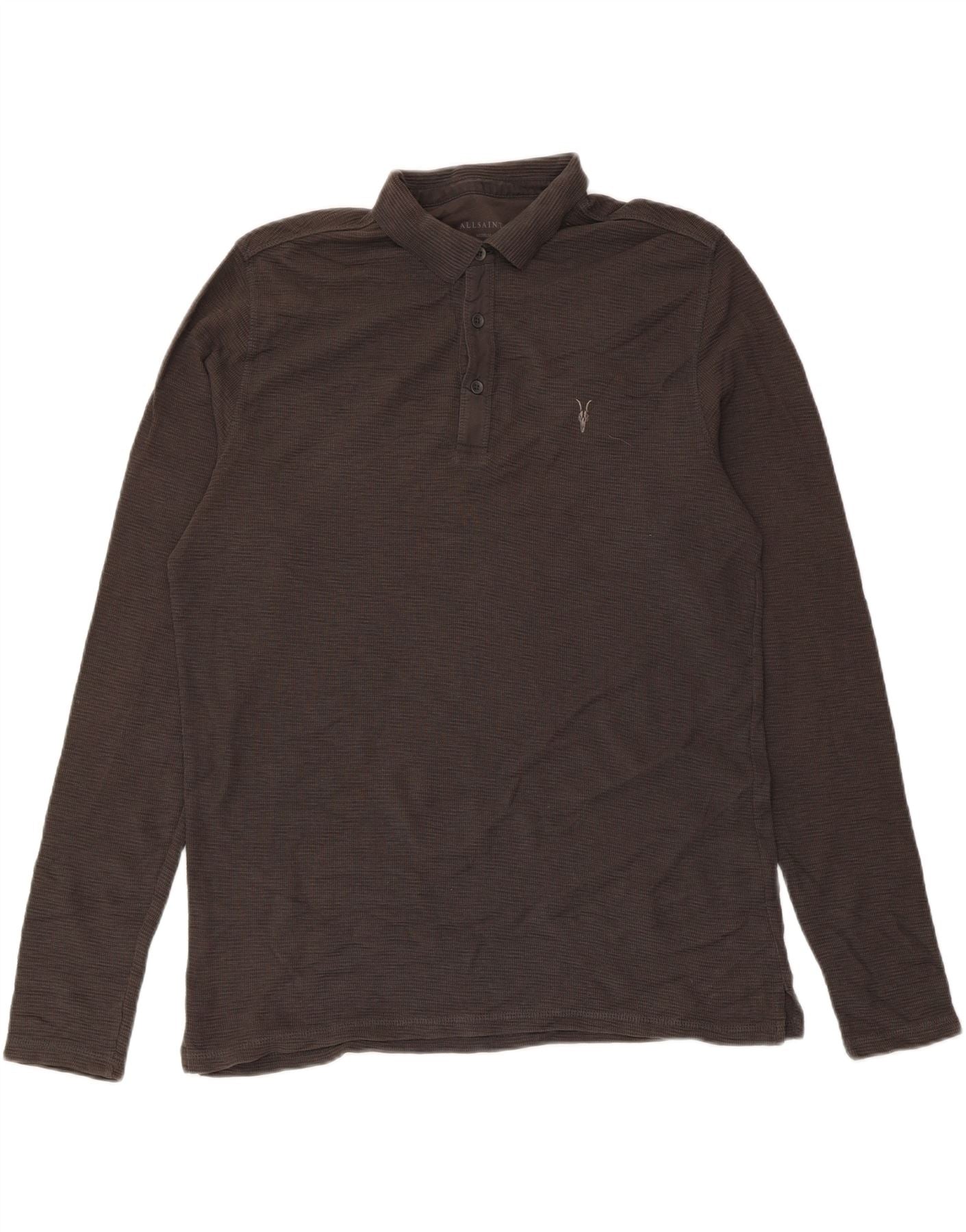 All Saints Mens Long Sleeve Polo Shirt Medium Grey Cotton