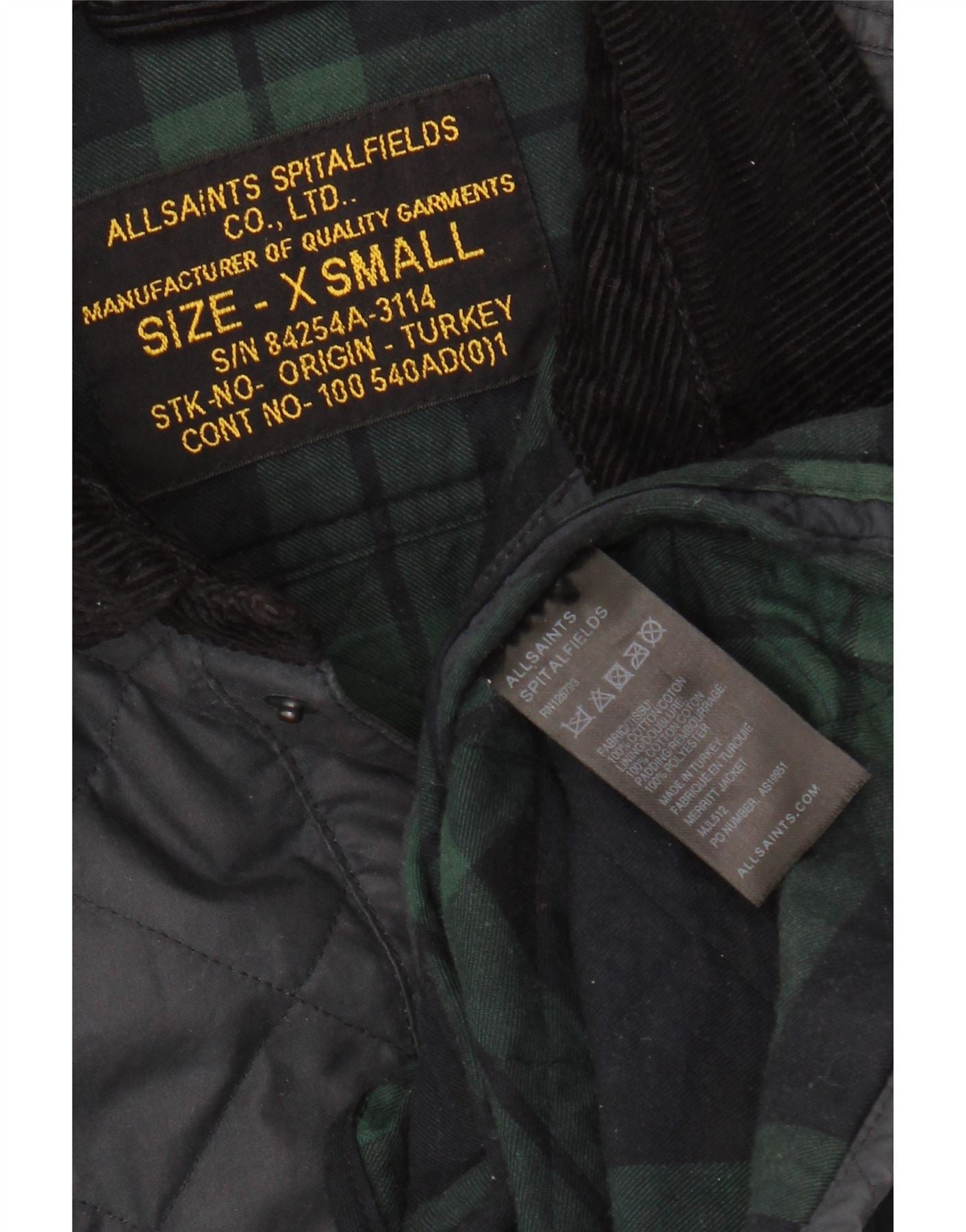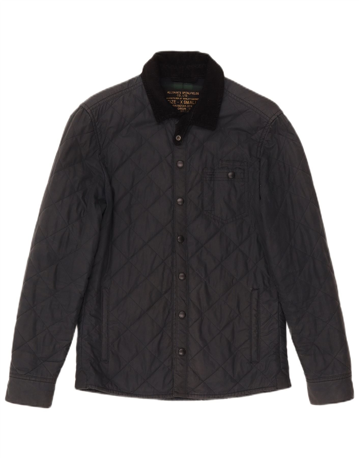 ALL SAINTS Mens Quilted Jacket UK 34 XS Navy Blue Cotton