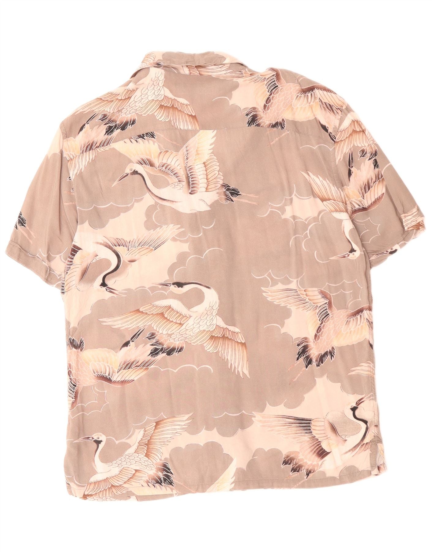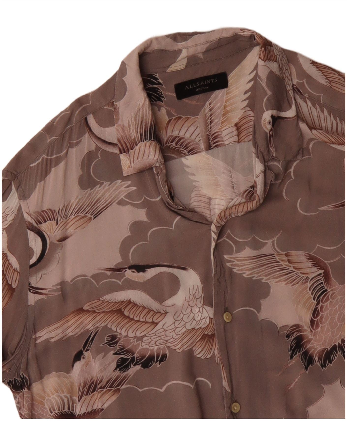 All Saints Mens Short Sleeve Shirt Medium Grey Animal Print Viscose Bird
