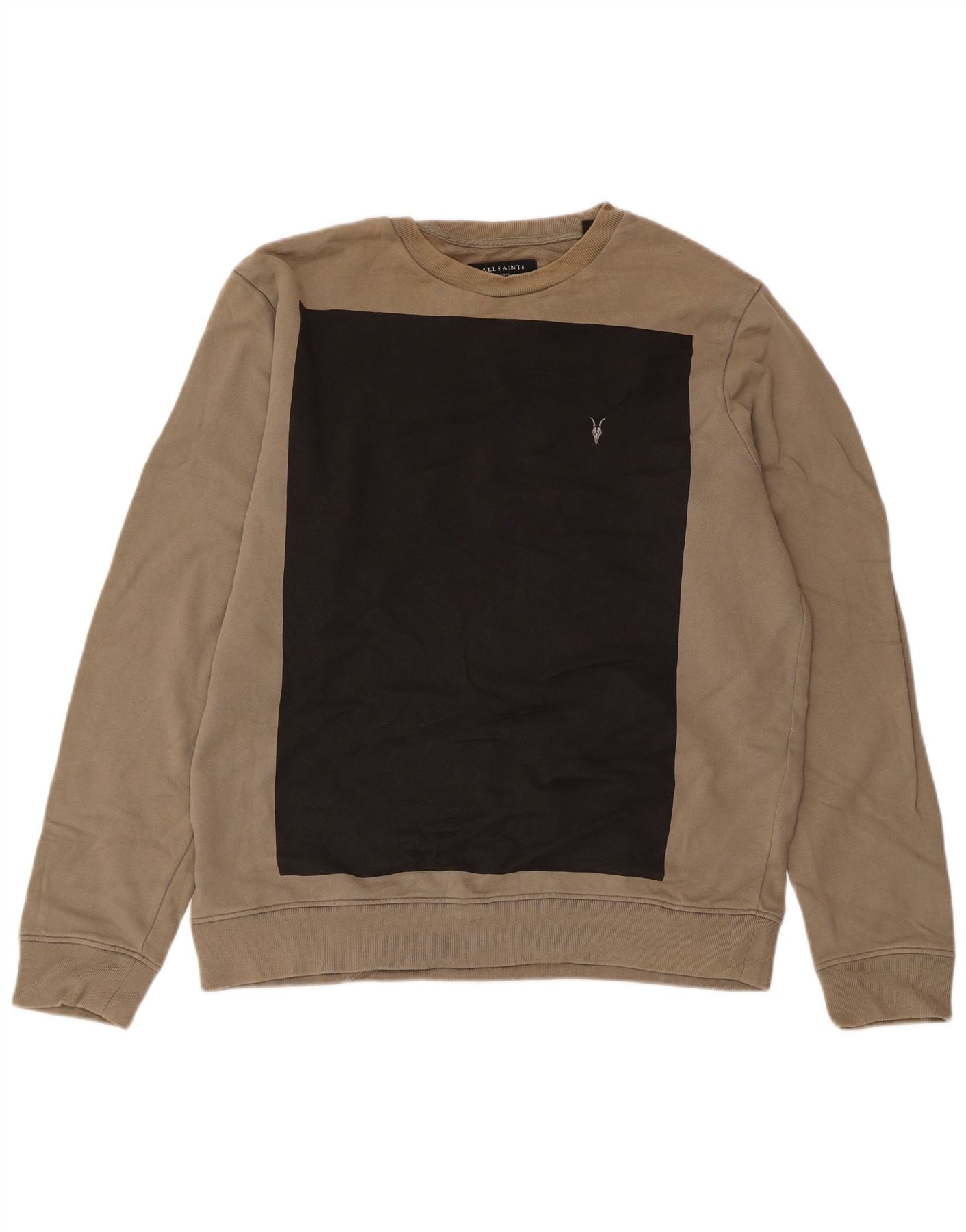 All Saints Mens Sweatshirt Jumper Large Beige Colourblock Cotton