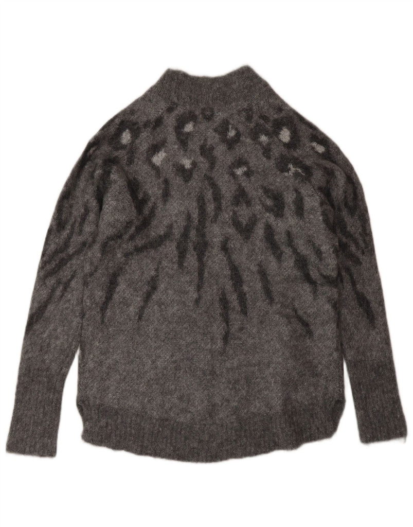 ALL SAINTS Womens Turtle Neck Jumper Sweater UK 10 Small Grey Animal Print