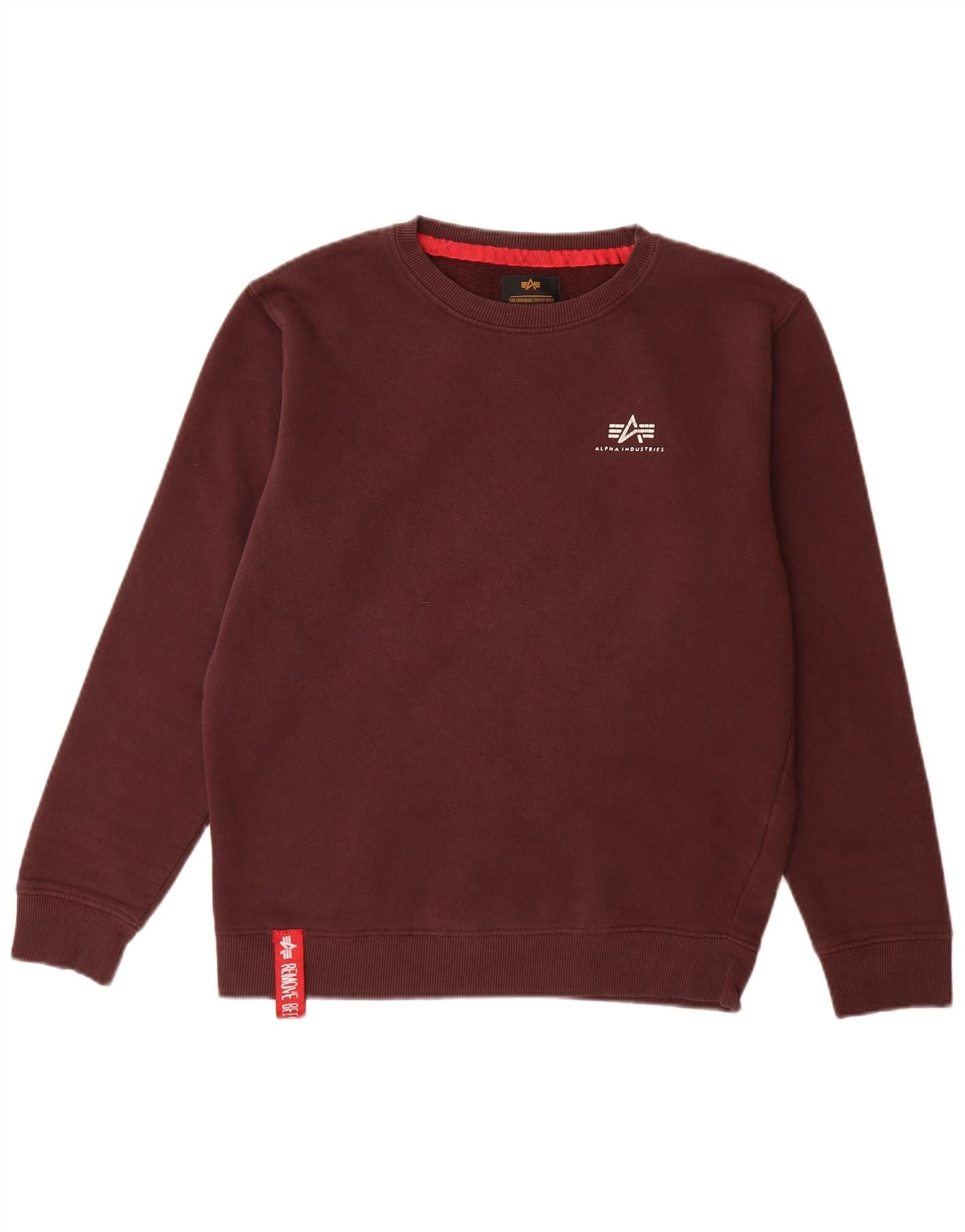 ALPHA INDUSTRIES Mens Sweatshirt Jumper Small Burgundy Cotton