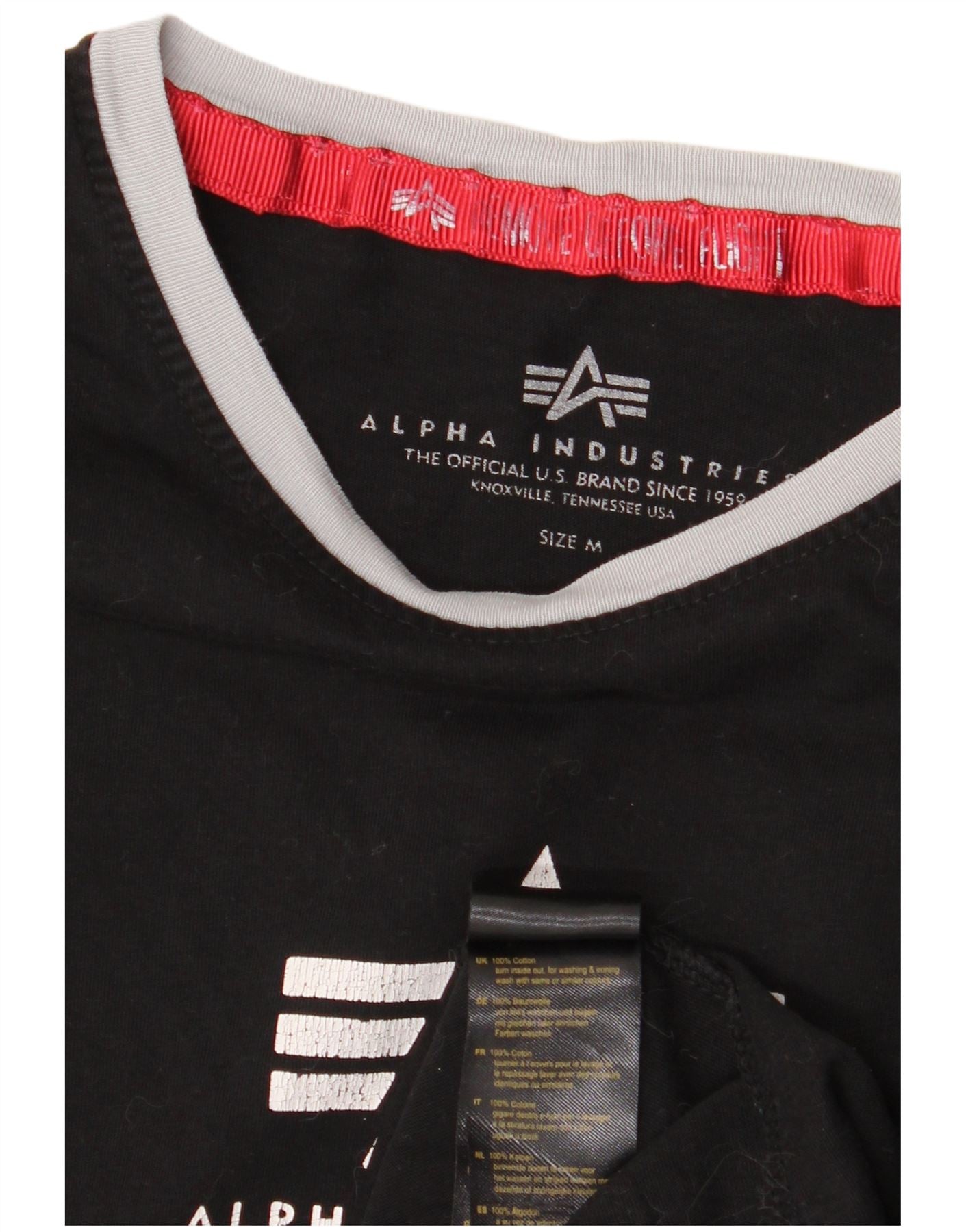 ALPHA INDUSTRIES Womens Graphic T-Shirt Top UK 14 Medium Black Cotton