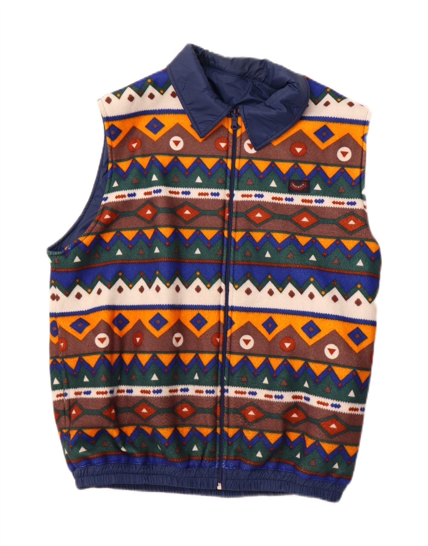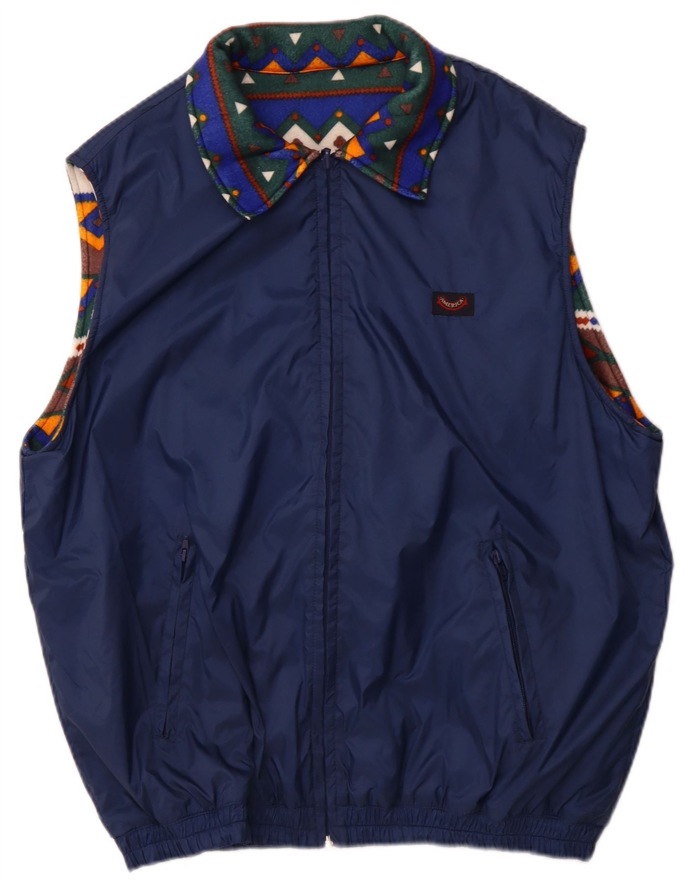 AMERICA Mens Reversible Gilet UK 40 Large Navy Blue Geometric Polyamide
