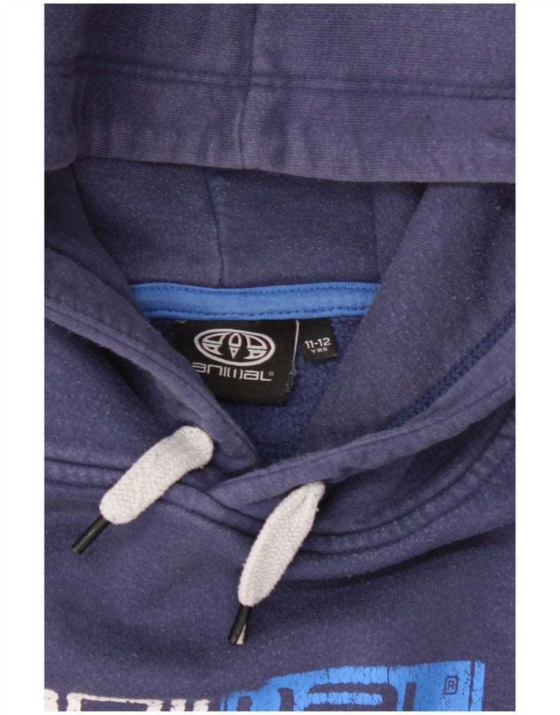 ANIMAL Boys Graphic Hoodie Jumper 11-12 Years Navy Blue Cotton