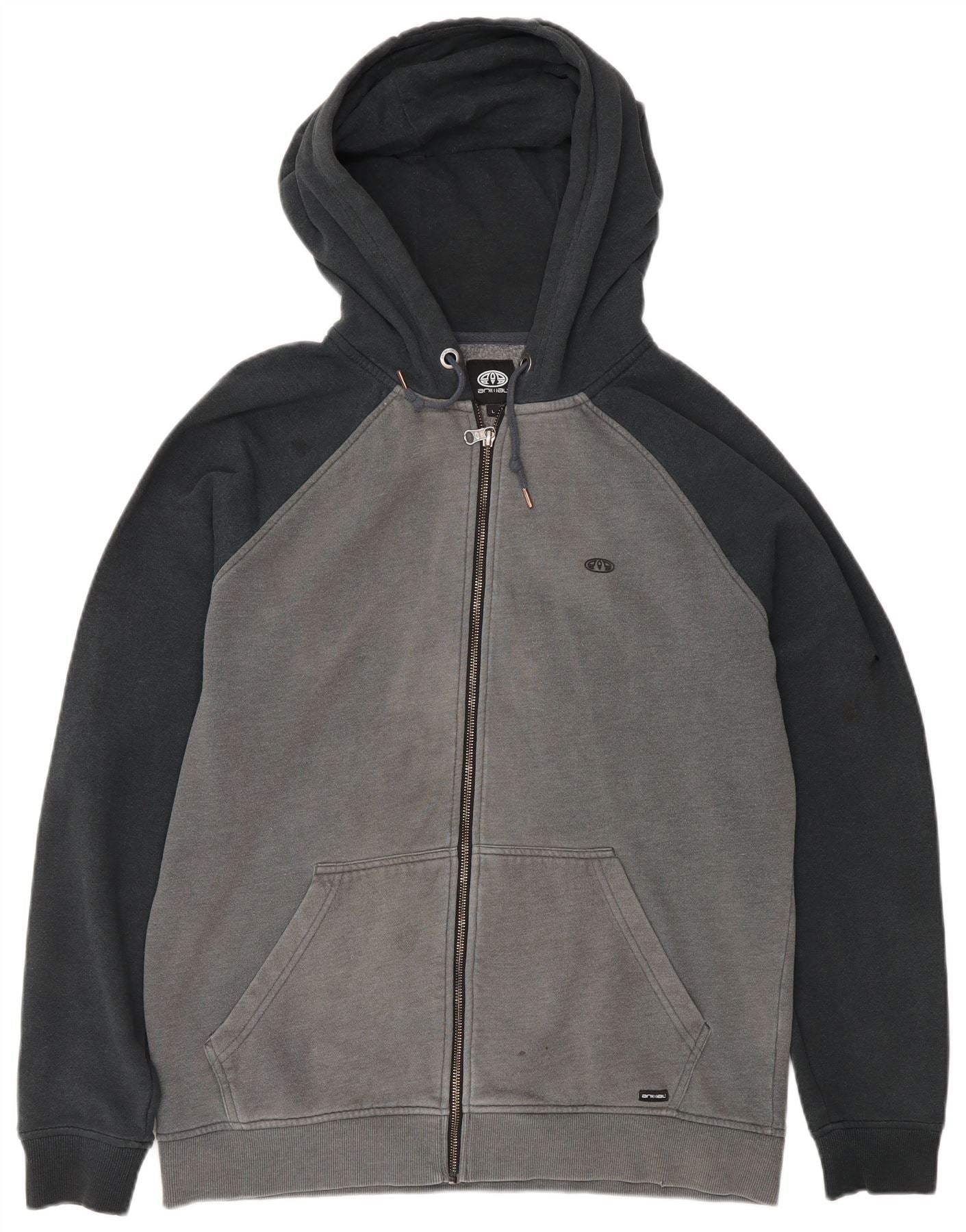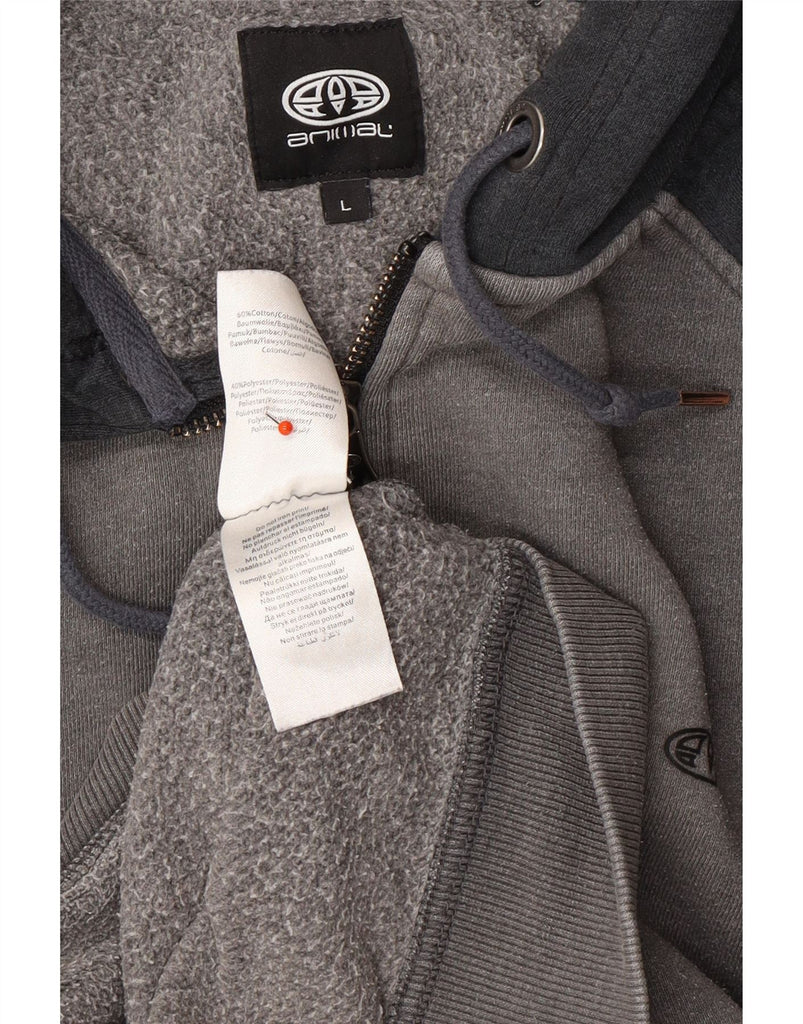 ANIMAL Mens Zip Hoodie Sweater Large Grey Colourblock Cotton
