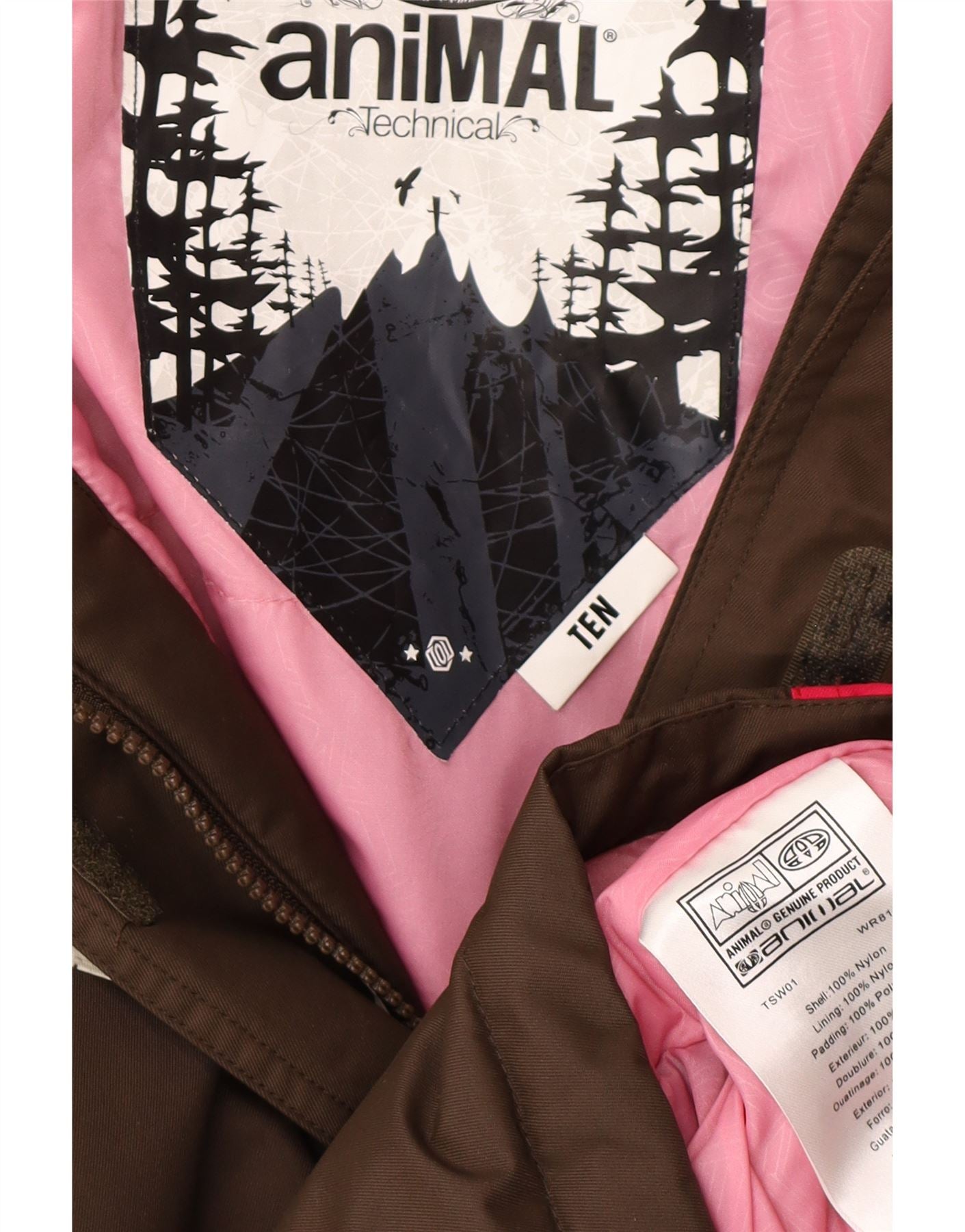 ANIMAL Womens Oversized Hooded Rain Jacket UK 10 Small Brown Colourblock