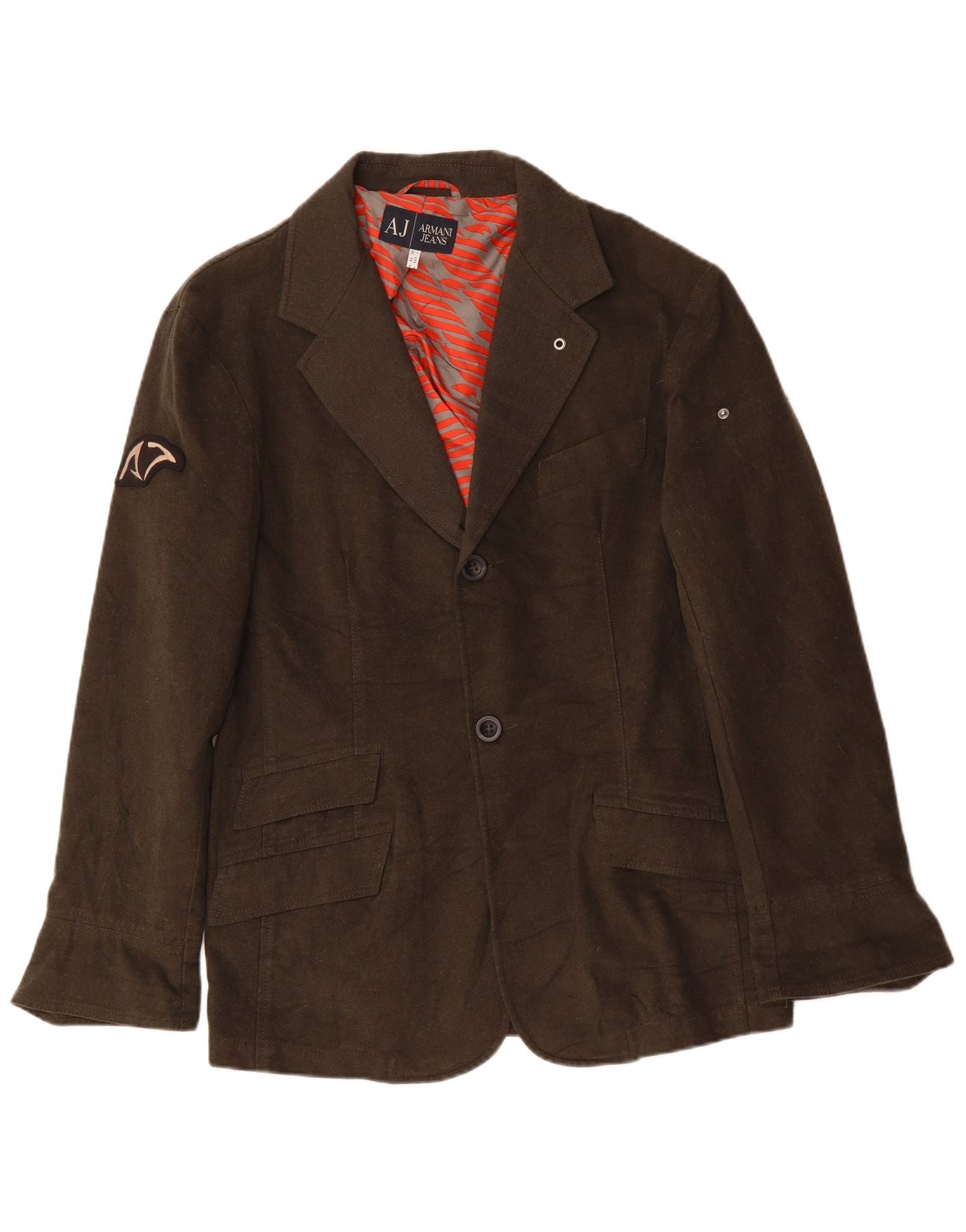 ARMANI JEANS Mens 2 Button Blazer Jacket IT 52 Large Khaki Cotton