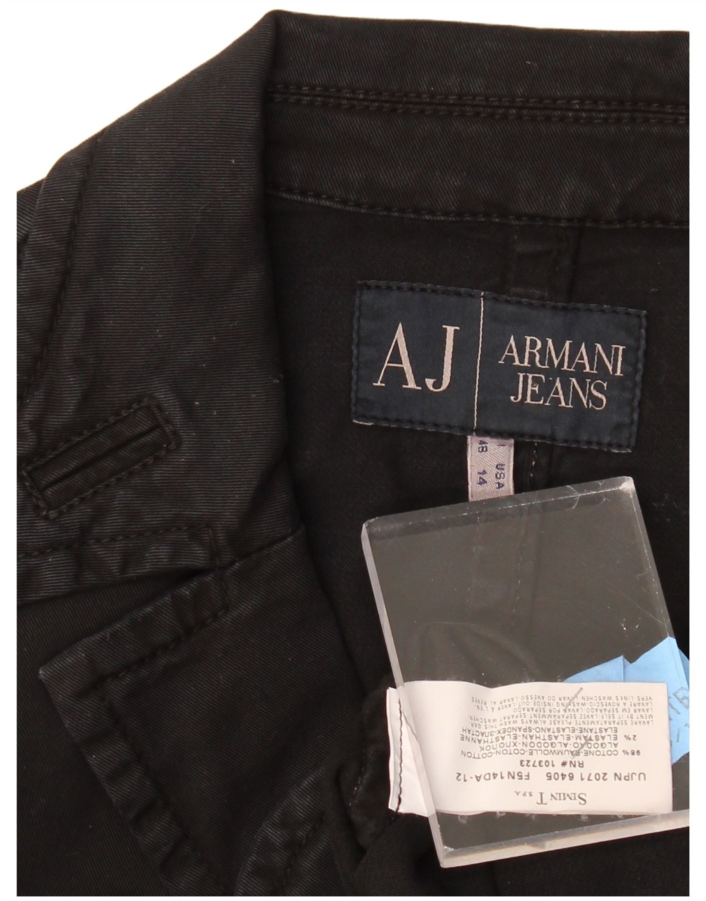 ARMANI JEANS Womens Crop 3 Button Blazer Jacket IT 48 XL Black Cotton