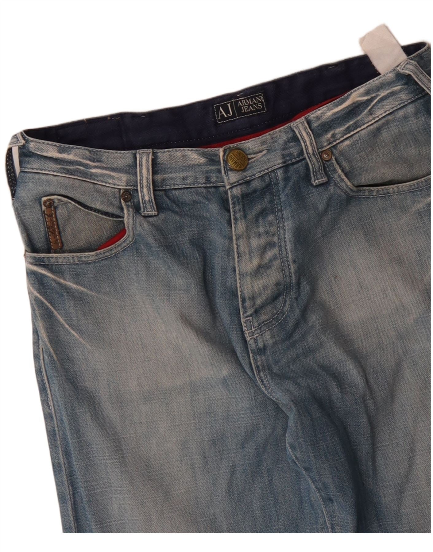 ARMANI Mens Graphic Distressed Straight Jeans W29 L31 Blue