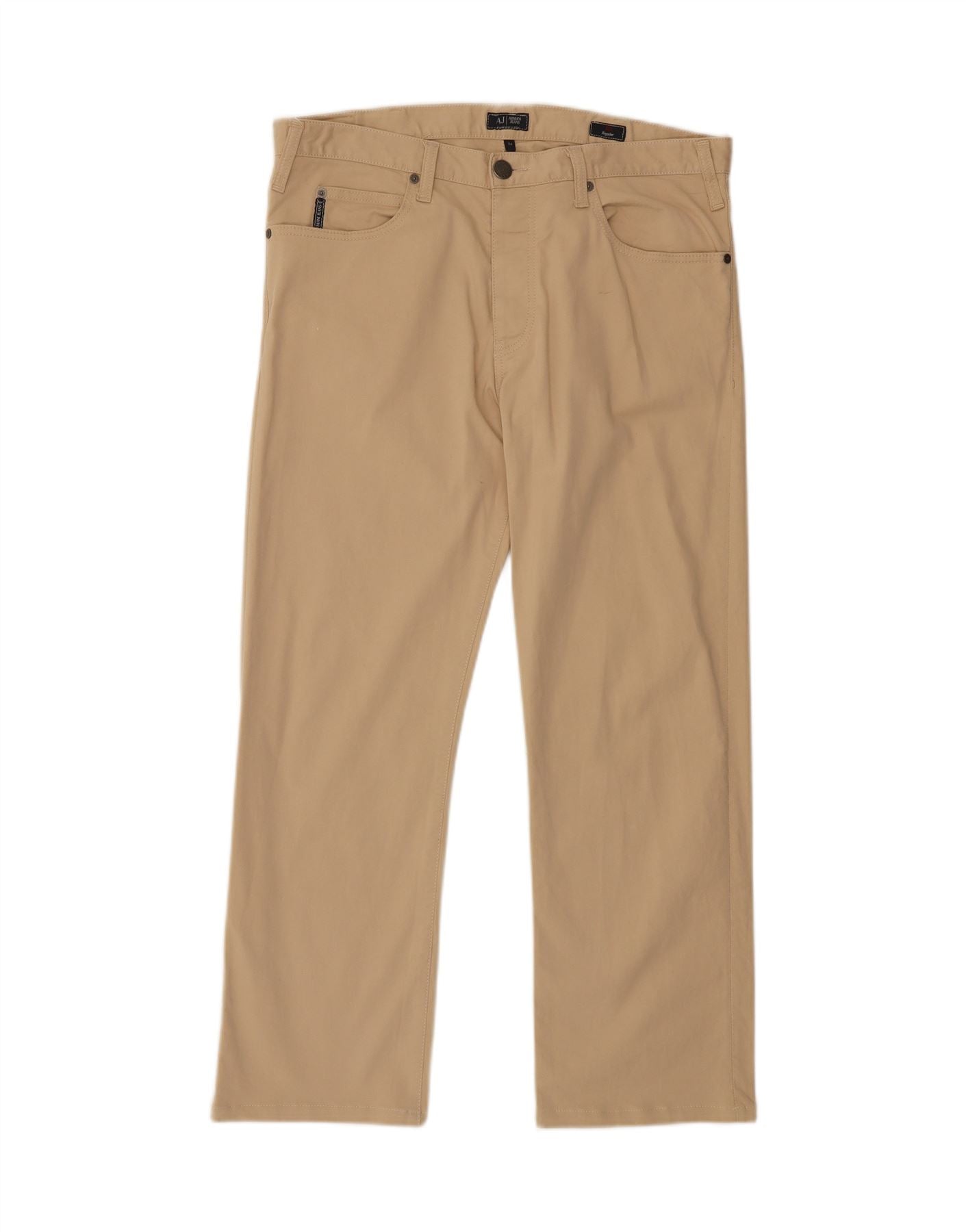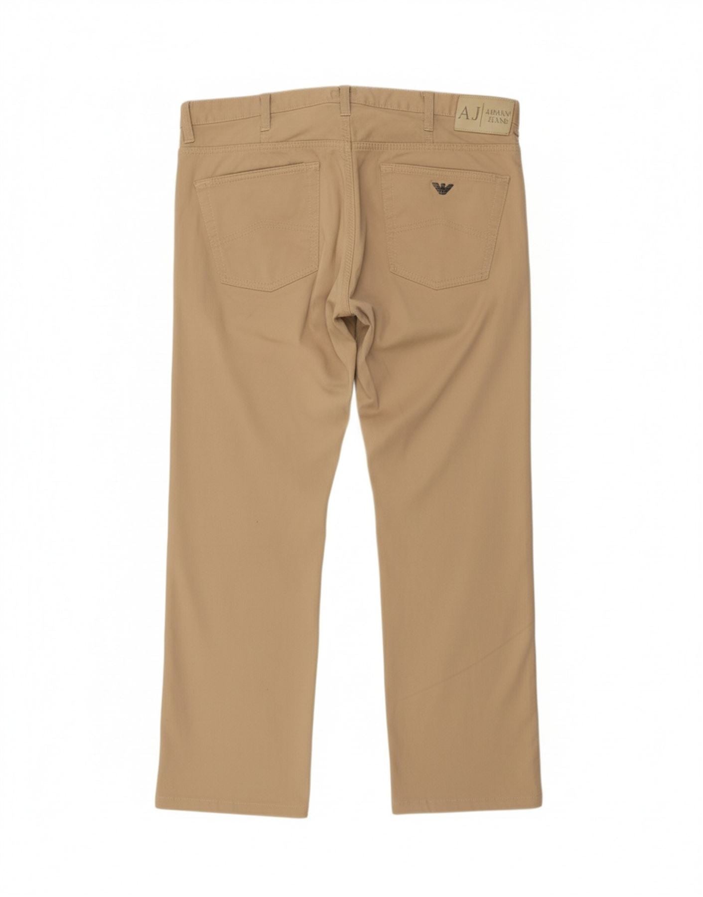 ARMANI Mens Straight Casual Trousers W34 L28 Beige Cotton