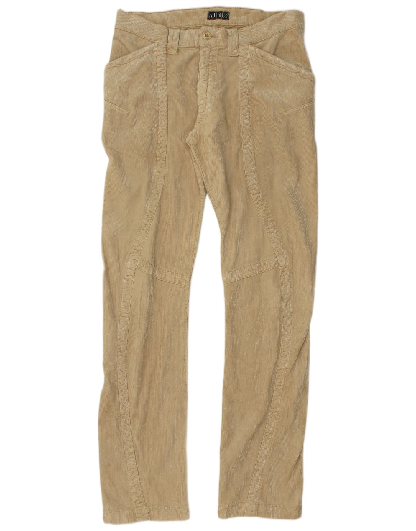 ARMANI Mens Straight Corduroy Trousers W34 L34 Beige Cotton