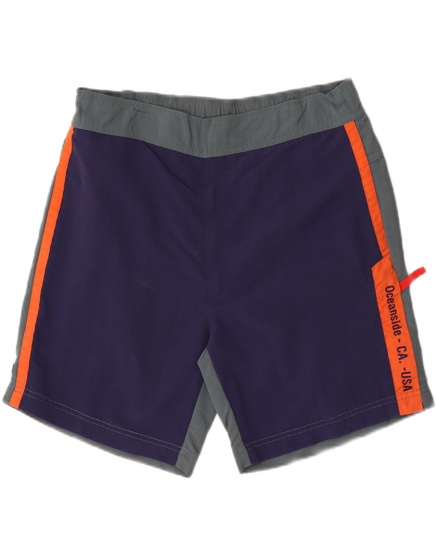 ASICS Mens Graphic Swimming Shorts Large Navy Blue Colourblock Nylon