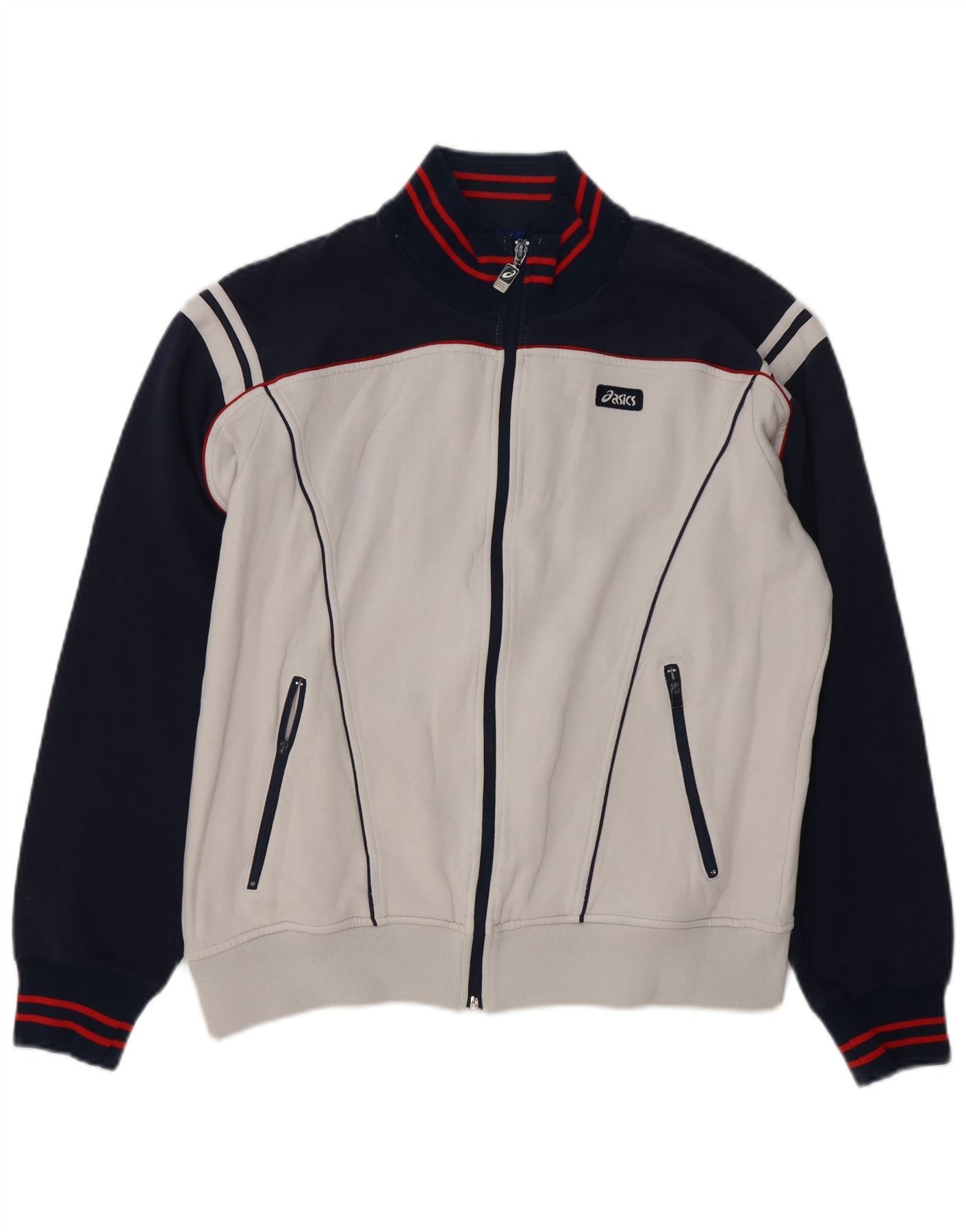 ASICS Mens Graphic Tracksuit Top Jacket Large White Colourblock