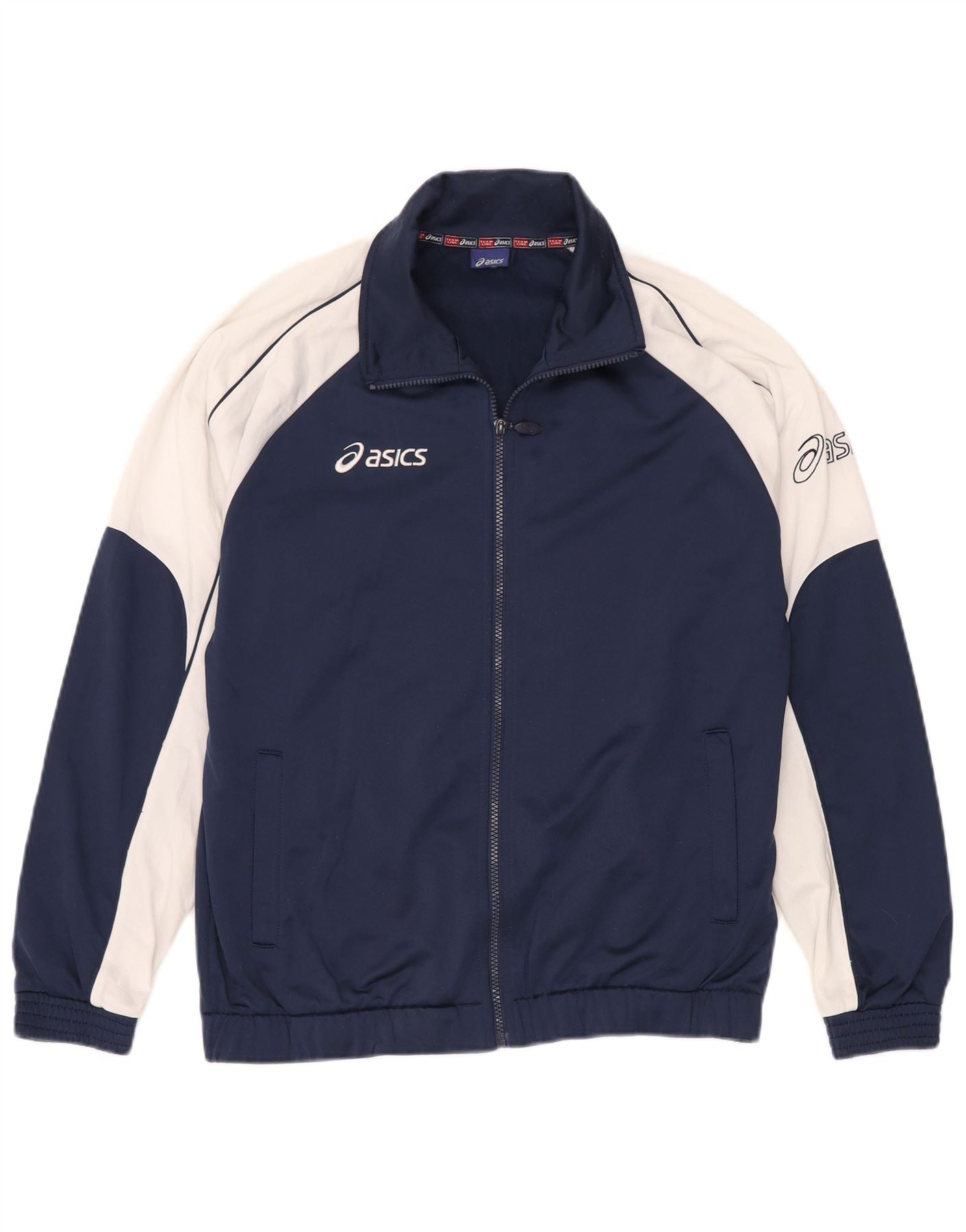 ASICS Mens Graphic Tracksuit Top Jacket Medium Navy Blue Colourblock