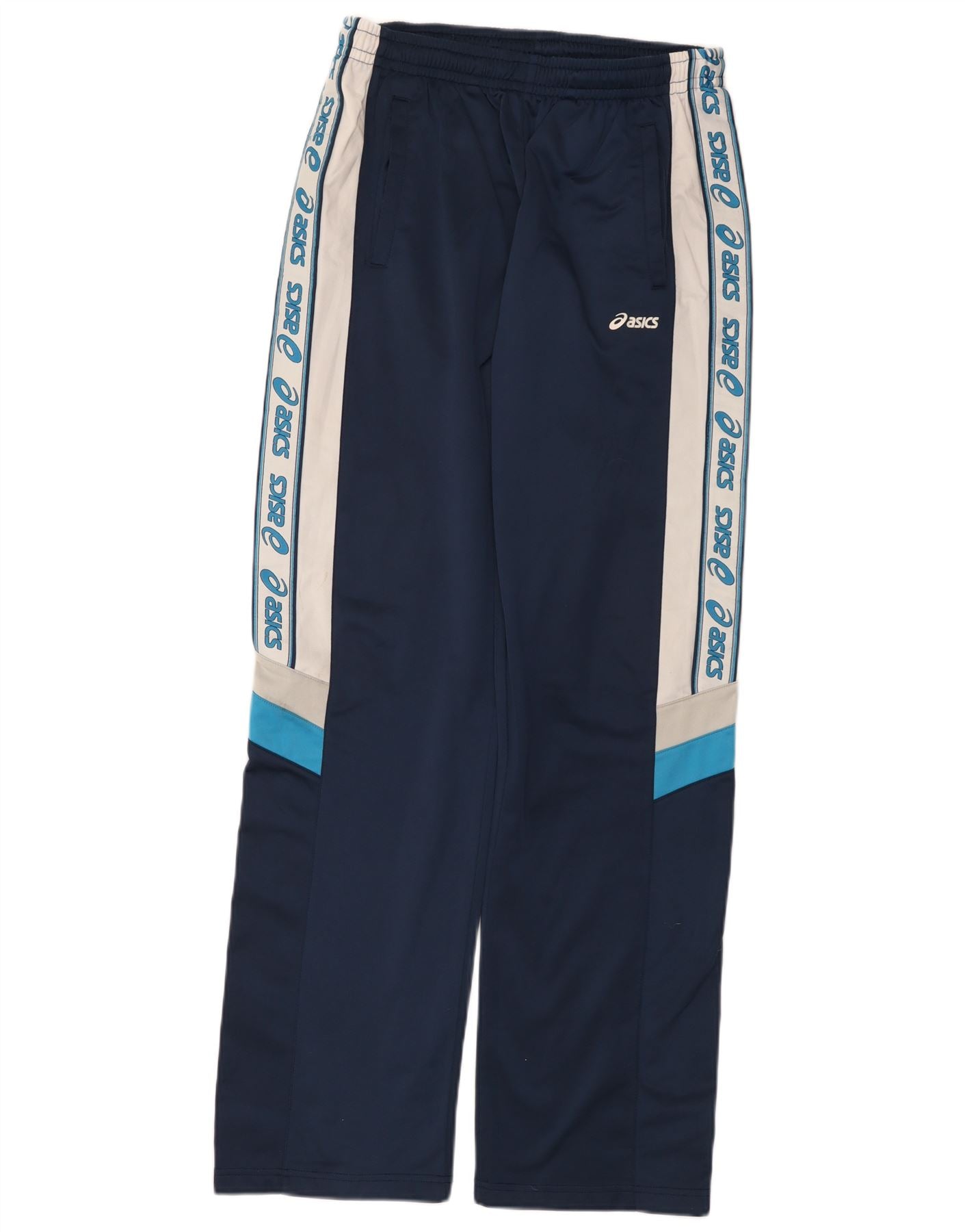 Home > Vintage Asics Clothing > Men's Vintage Asics Clothing > Tracksuit Bottoms > ASICS Mens Graphic Tracksuit Trousers Medium Navy Blue Colourblock