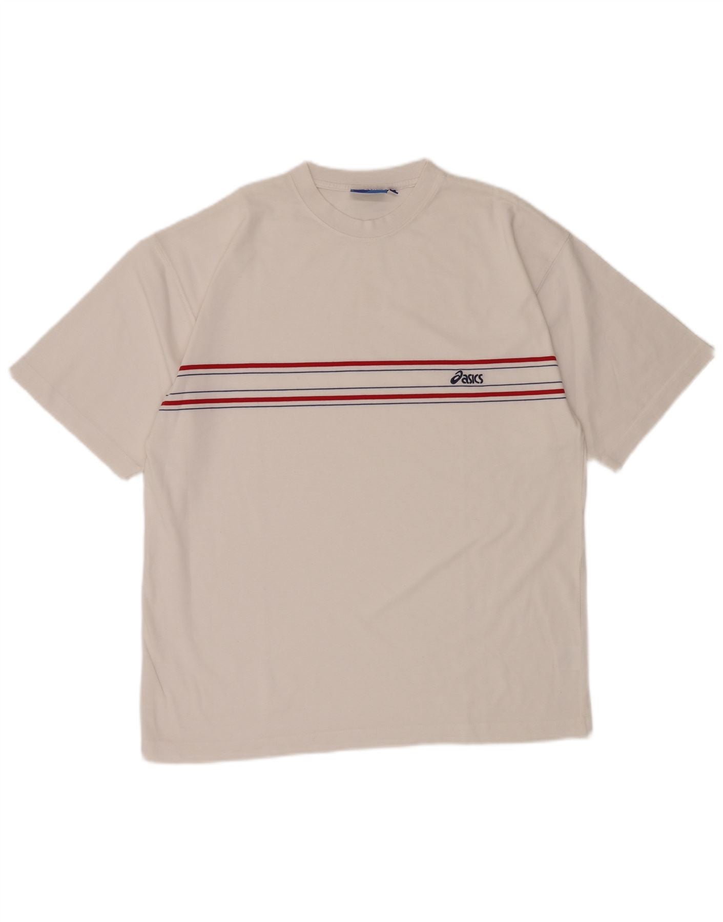 Home > Vintage Asics Clothing > Men's Vintage Asics Clothing > T-Shirts > ASICS Mens T-Shirt Top Large White Striped Polyester