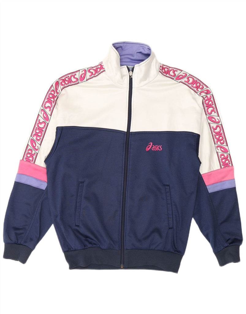 ASICS Womens Tracksuit Top Jacket IT 44 Medium Navy Blue Colourblock