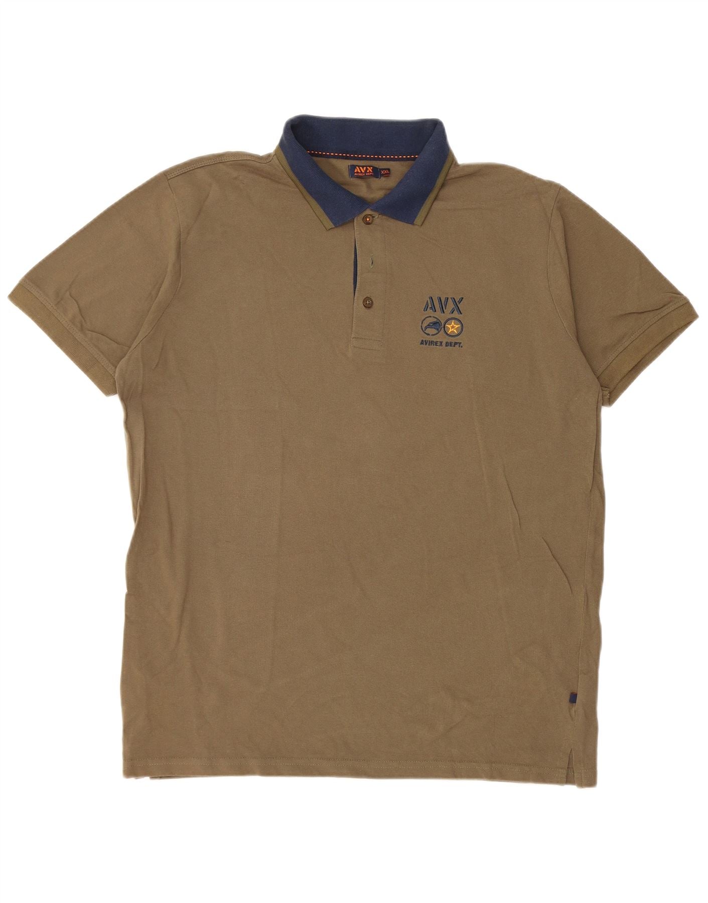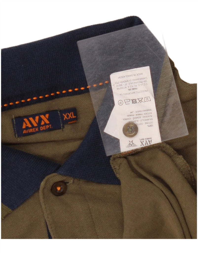AVIREX Mens Graphic Polo Shirt 2XL Khaki Colourblock Cotton