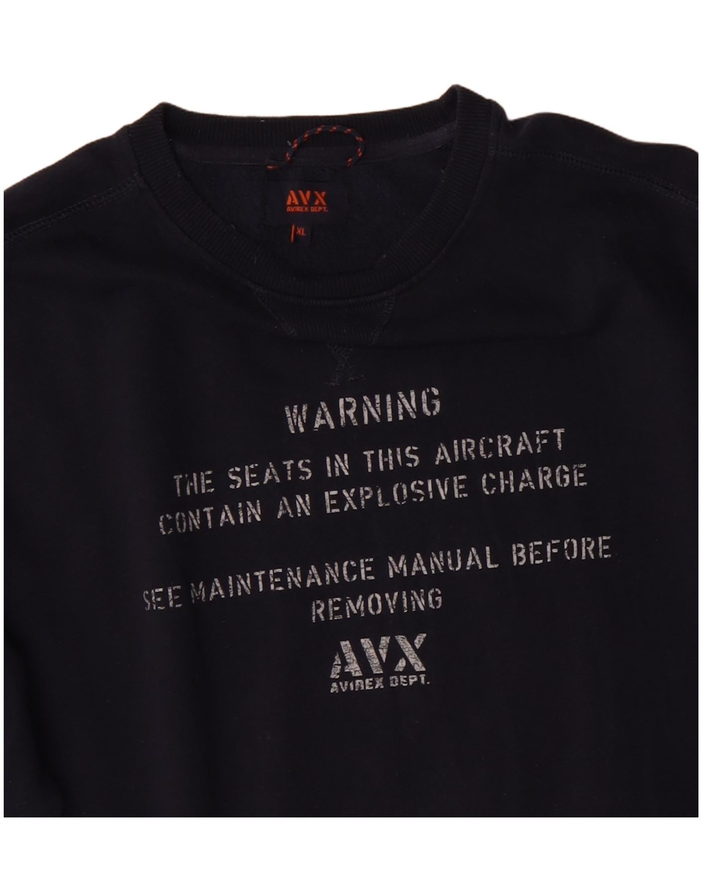 AVIREX Mens Graphic Sweatshirt Jumper XL Navy Blue Cotton