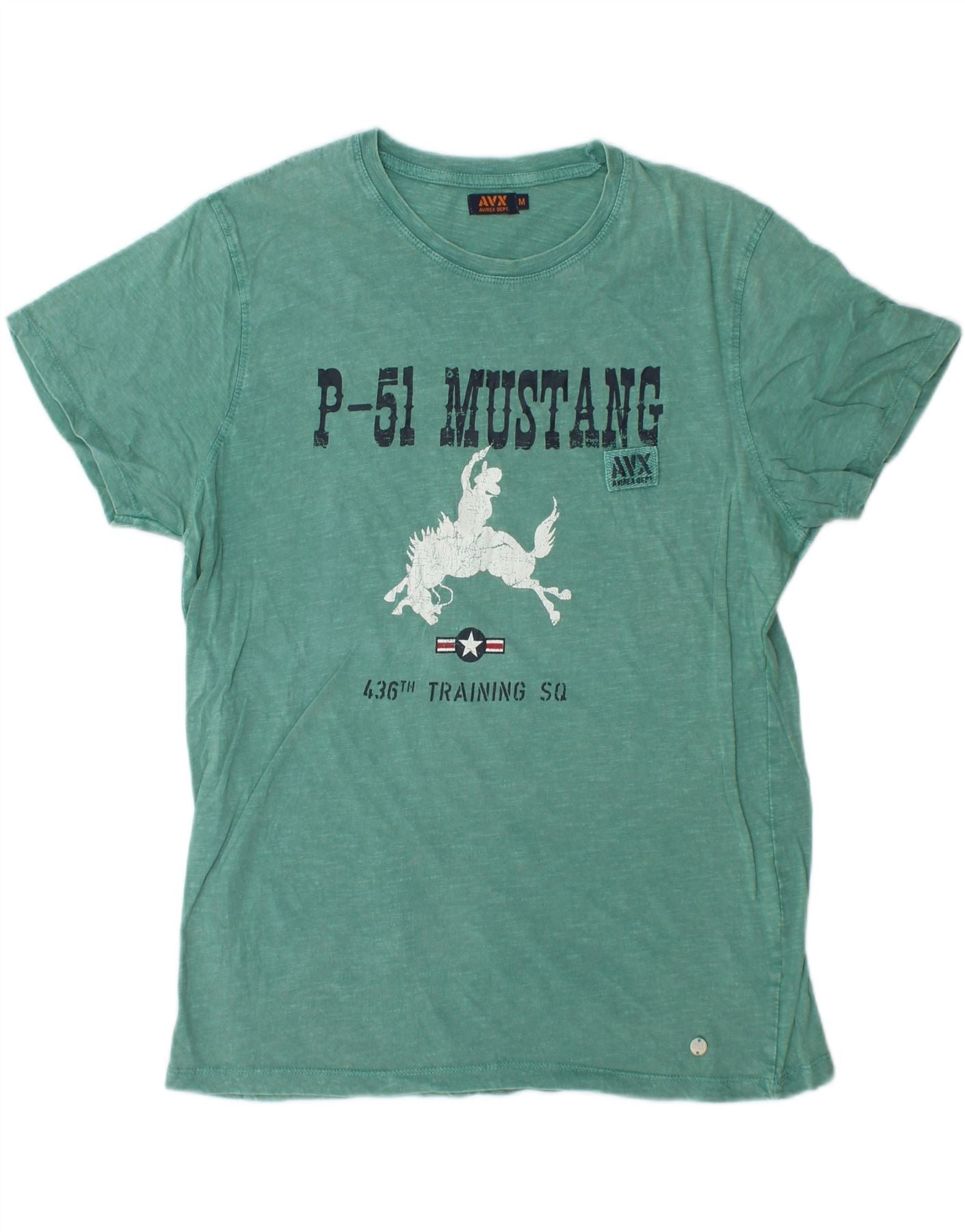 AVIREX Mens Graphic T-Shirt Top Medium Green Cotton