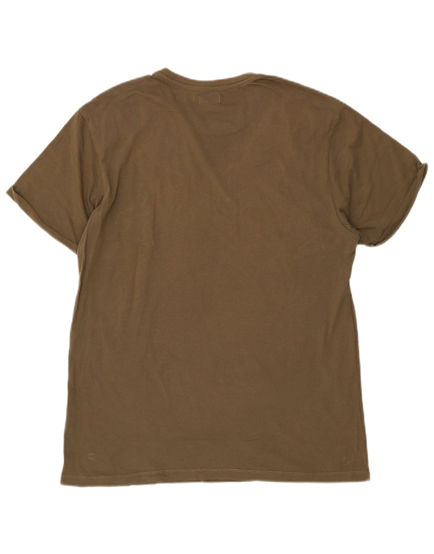 - AI Description: This Avirex mens Graphic T-Shirt Top is crafted from soft green 100 percent cotton jersey. It features a classic round neck and short sleeves, ensuring everyday comfort. The regular fit provides a relaxed silhouette. A distinctive orange Avirex Dept logo is printed on the chest. This pullover style offers effortless wearability and a clean finish.
