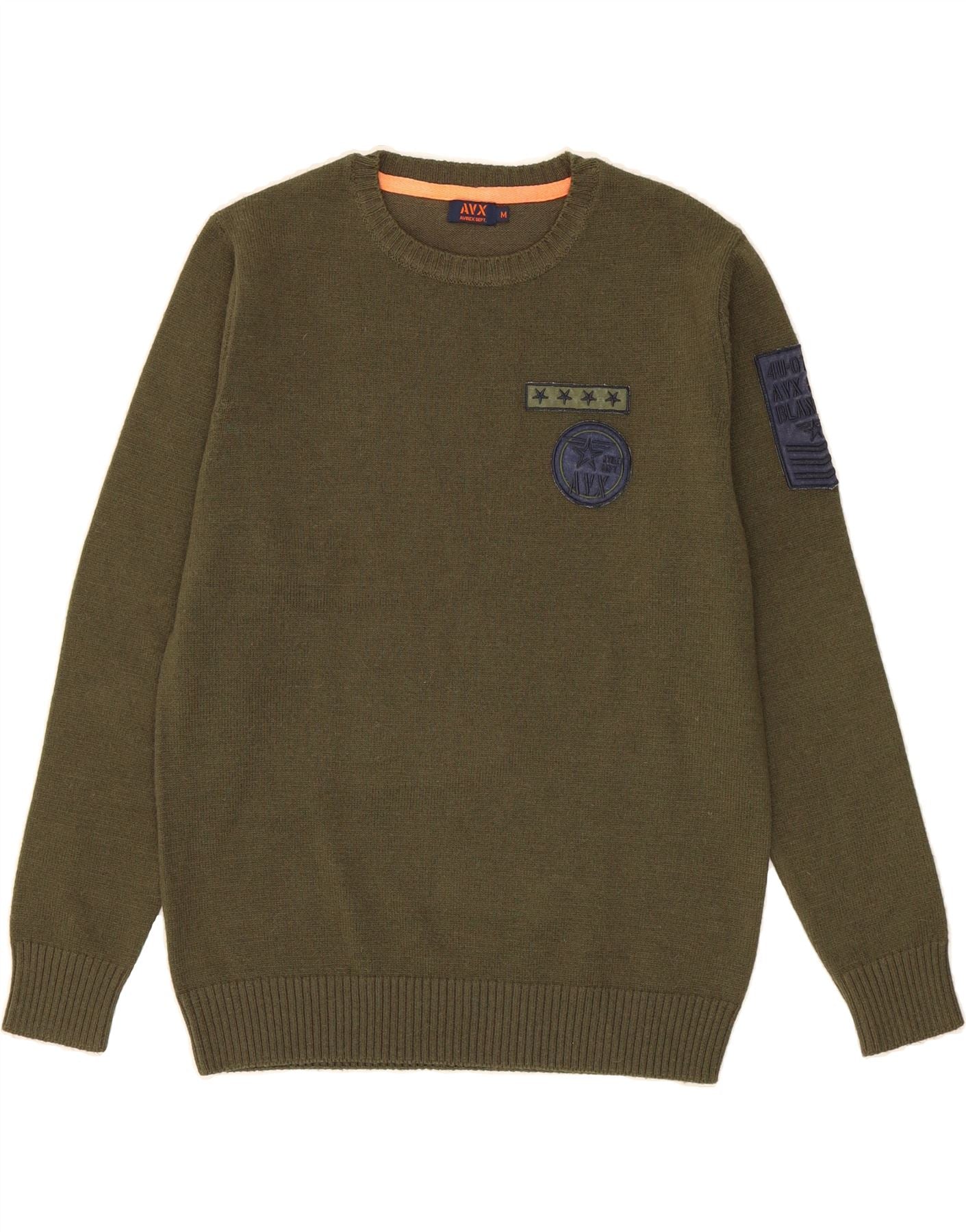 AVIREX Womens Crew Neck Jumper Sweater UK 14 Medium Khaki Polyacrylic