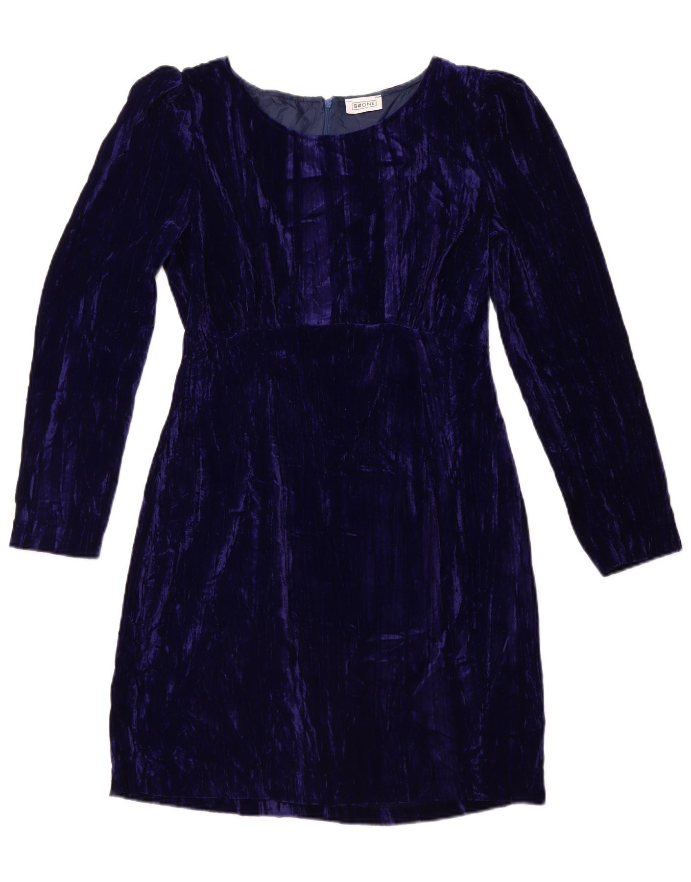 B.ONE Womens Long Sleeve Velour Sheath Dress UK 14 Large Blue Polyester